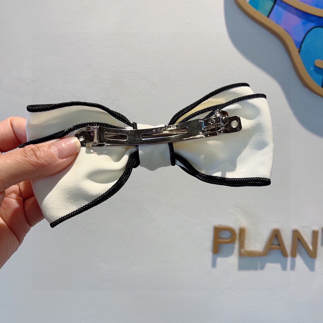 BOW HAIRPIN IN WHITE AND BLACK TRIM COTTON 406023
