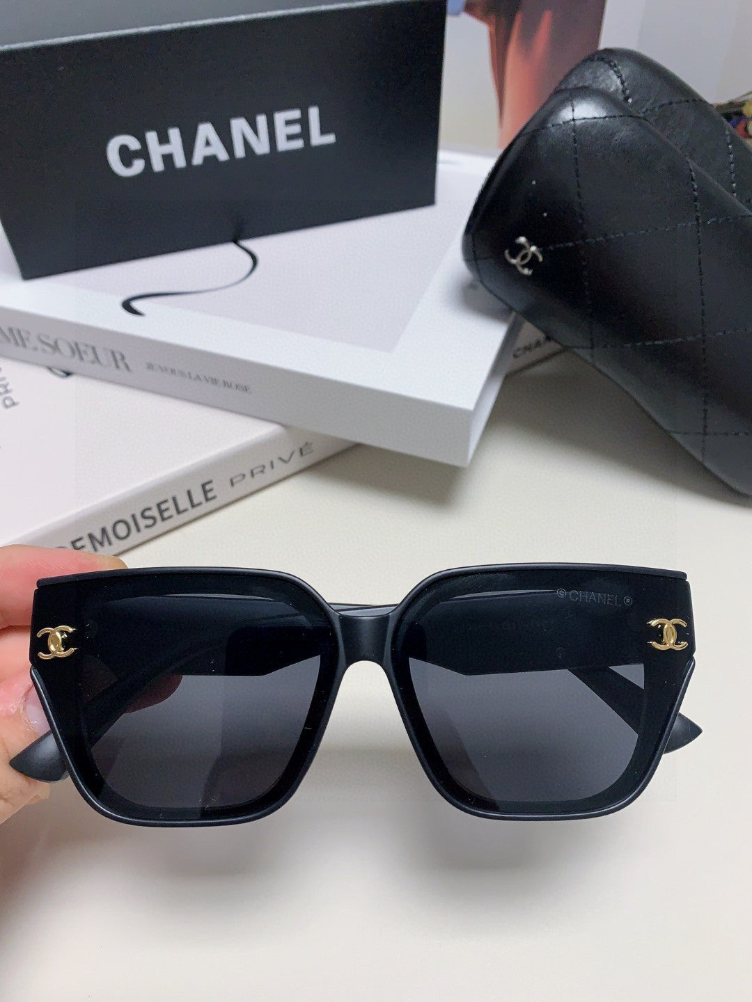 SQUARE SUNGLASSES 632697 IN BLACK ACETATE