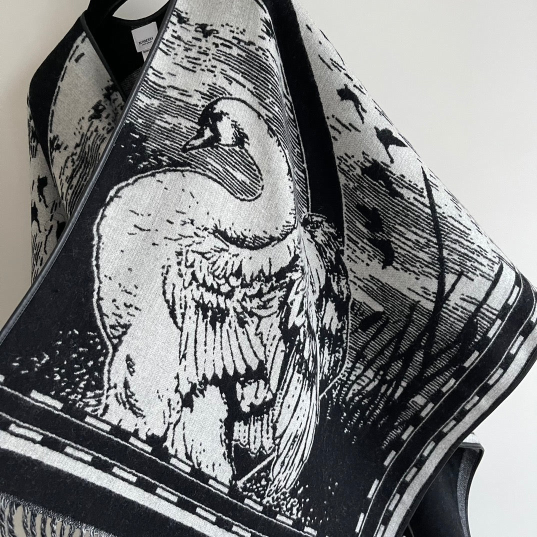 SWAN CAPE IN BLACK MIX WHITE CASHMERE 402246