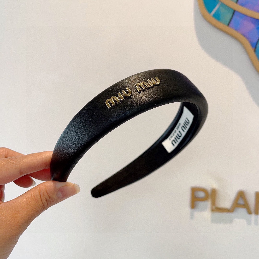 THICK HEADBAND IN BLACK CALFSKIN GOLD LOGO 409395
