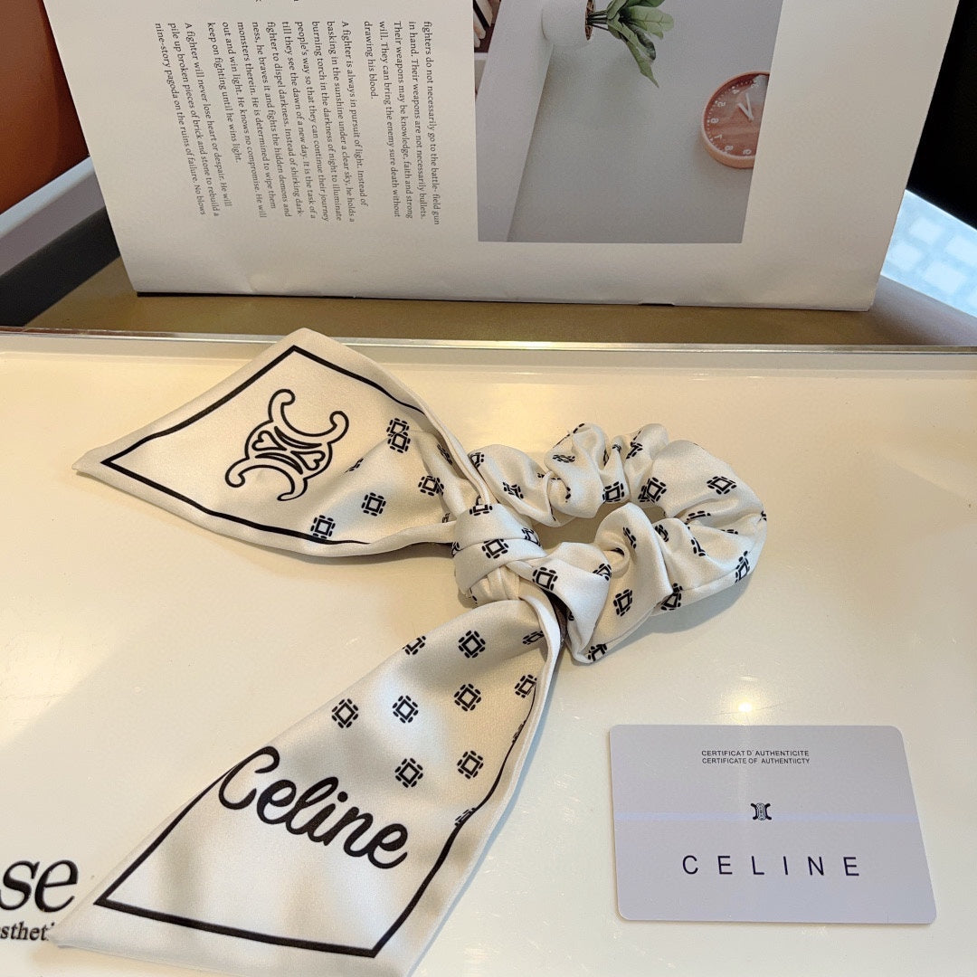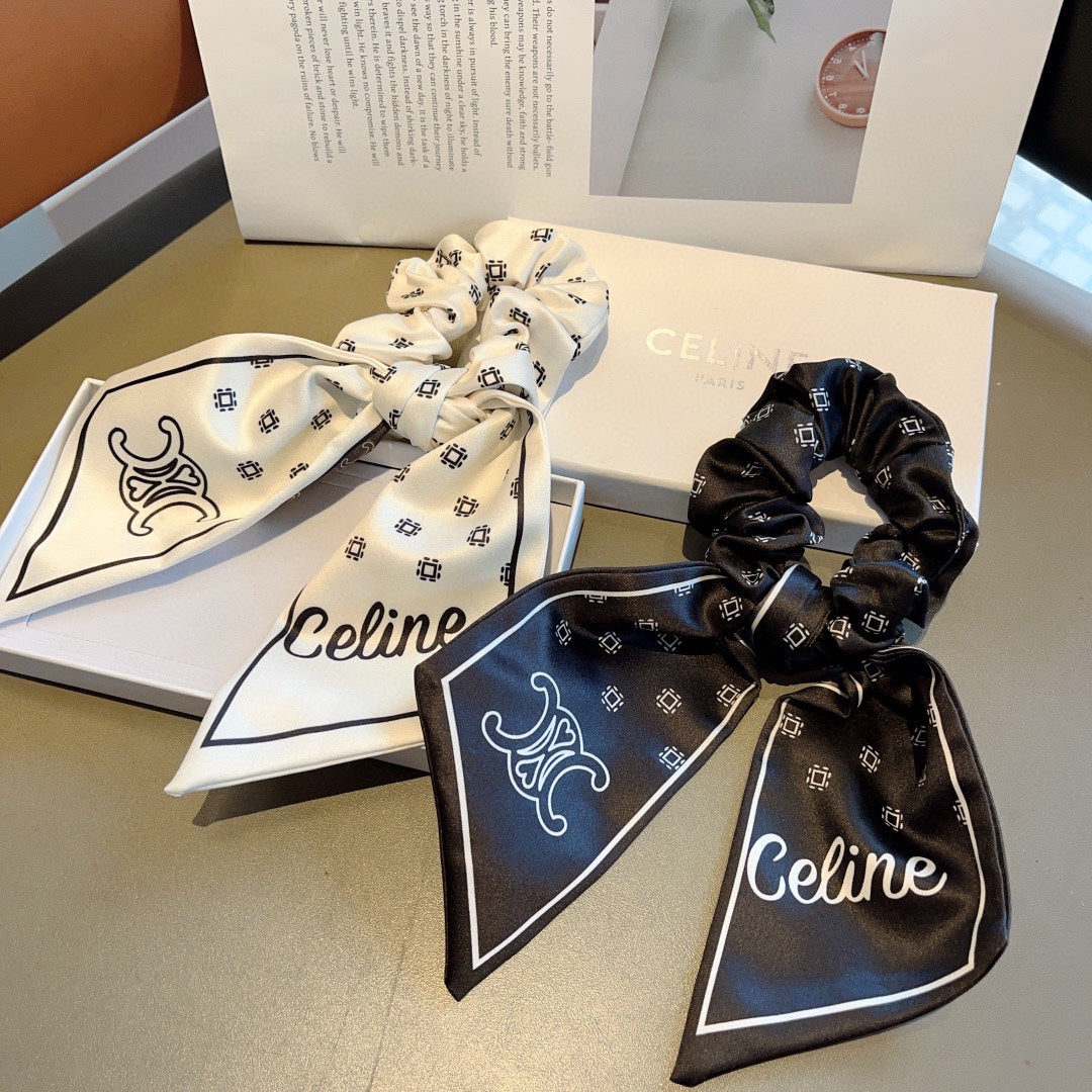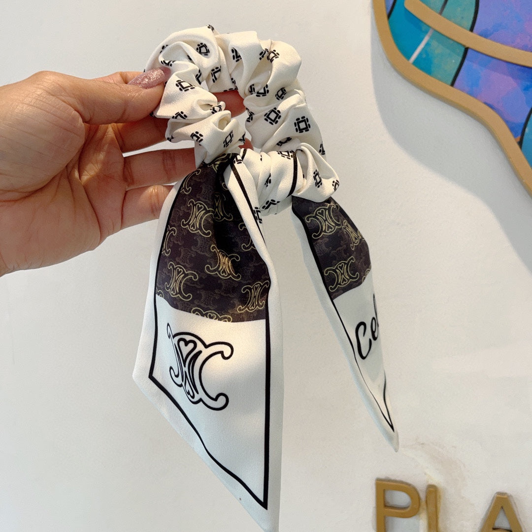 WHITE MIX BLACK SILK SCRUNCHIE 420657