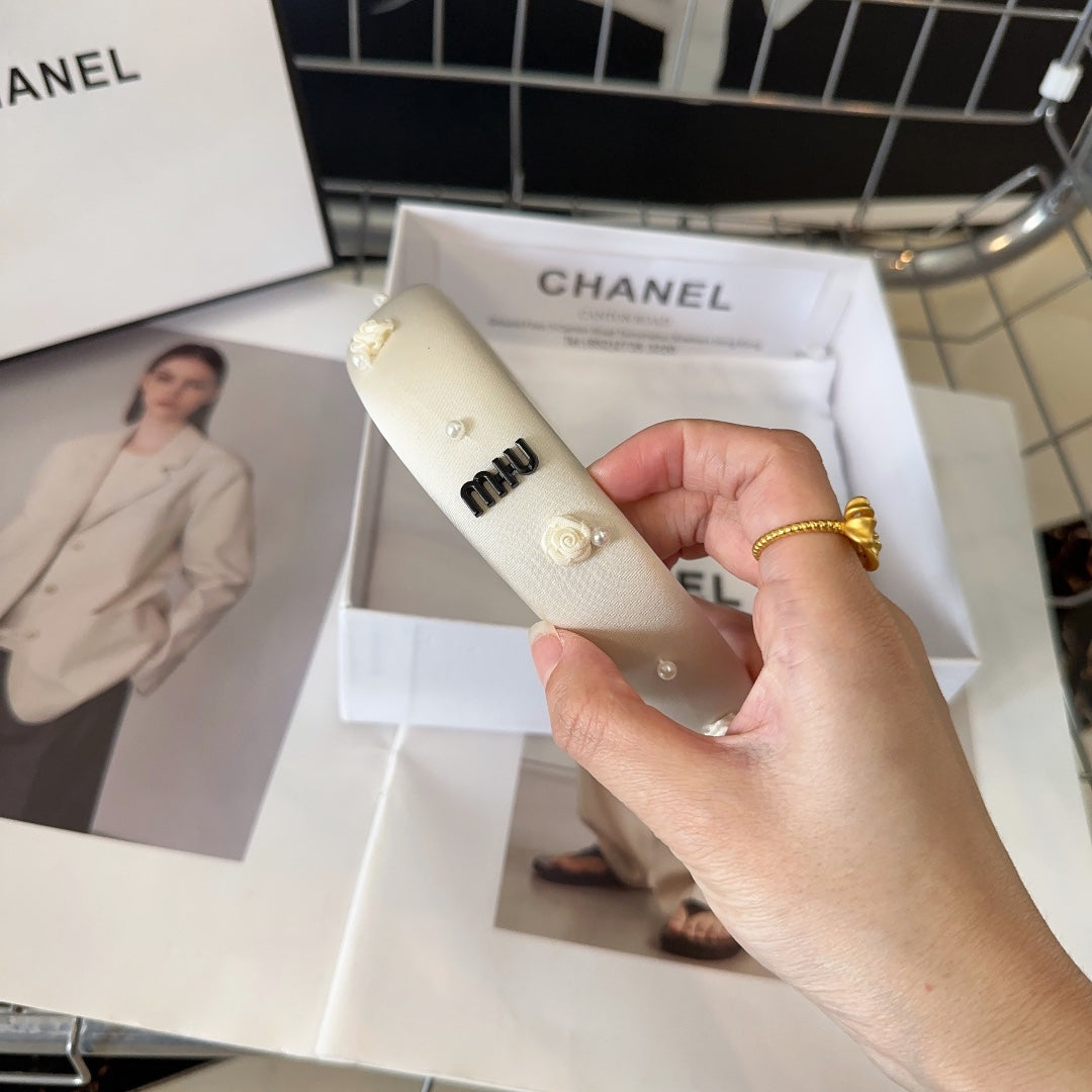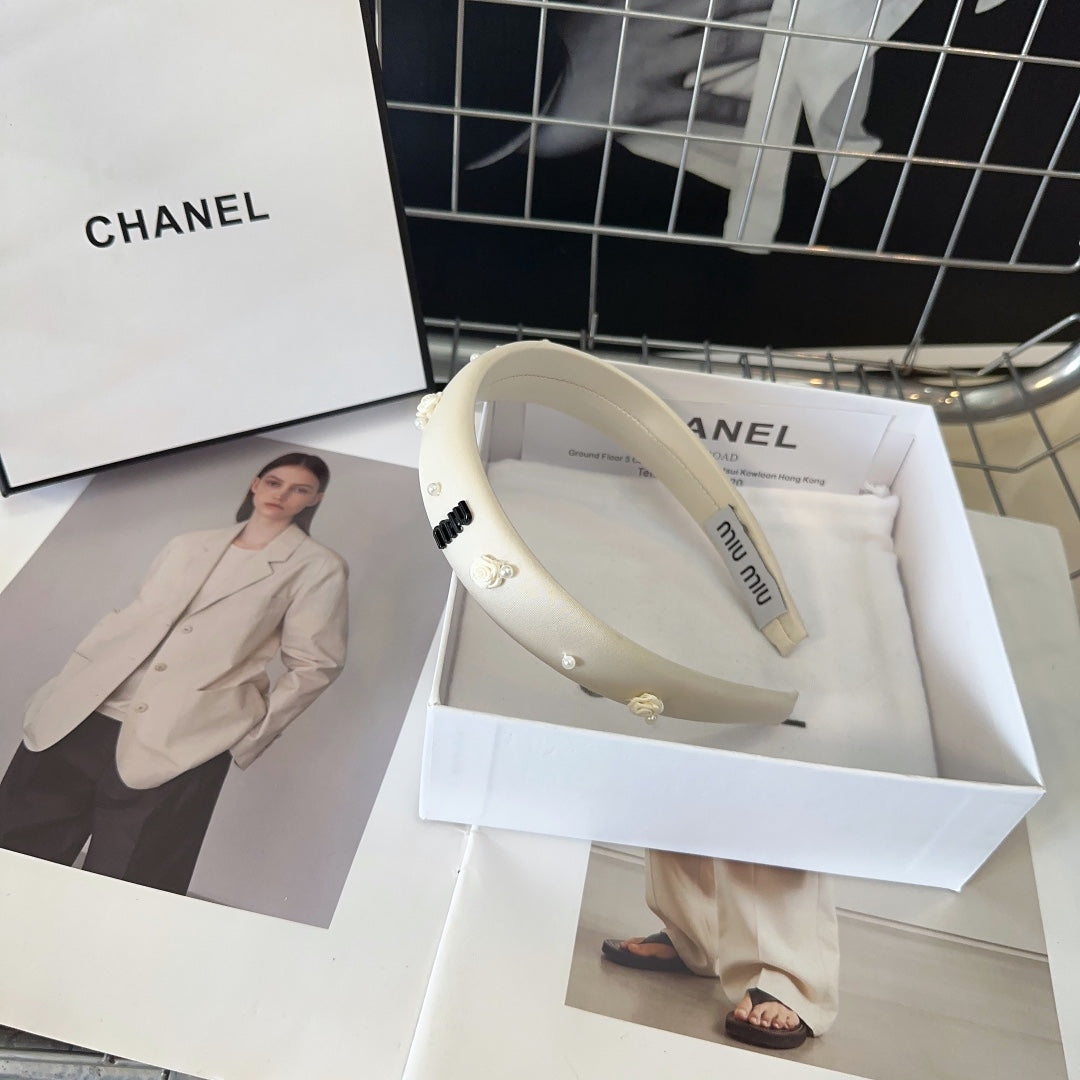 HEADBAND EMBELLISHED FLOWER AND PEARL IN IVORY WHITE SILK 194316