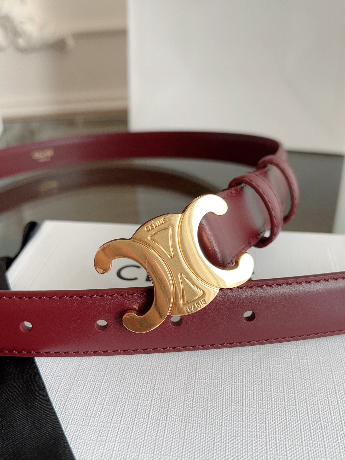 TRIOMPHE BELT 24MM IN WINE RED CALFSKIN WITH GOLD BUCKLE