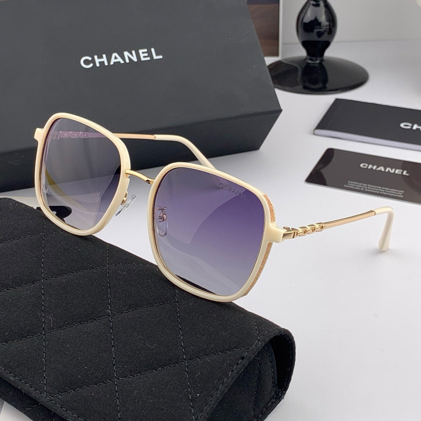 SQUARE SUNGLASSES 641812 IN BLACK ACETATE GOLD CHAIN