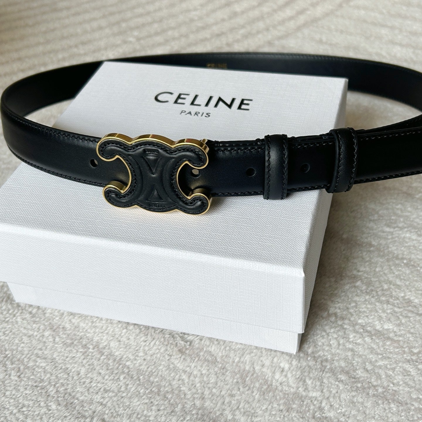 TRIOMPHE BELT 24MM IN BLACK CALFSKIN WITH LEATHER BUCKLE GOLD HARDWARE