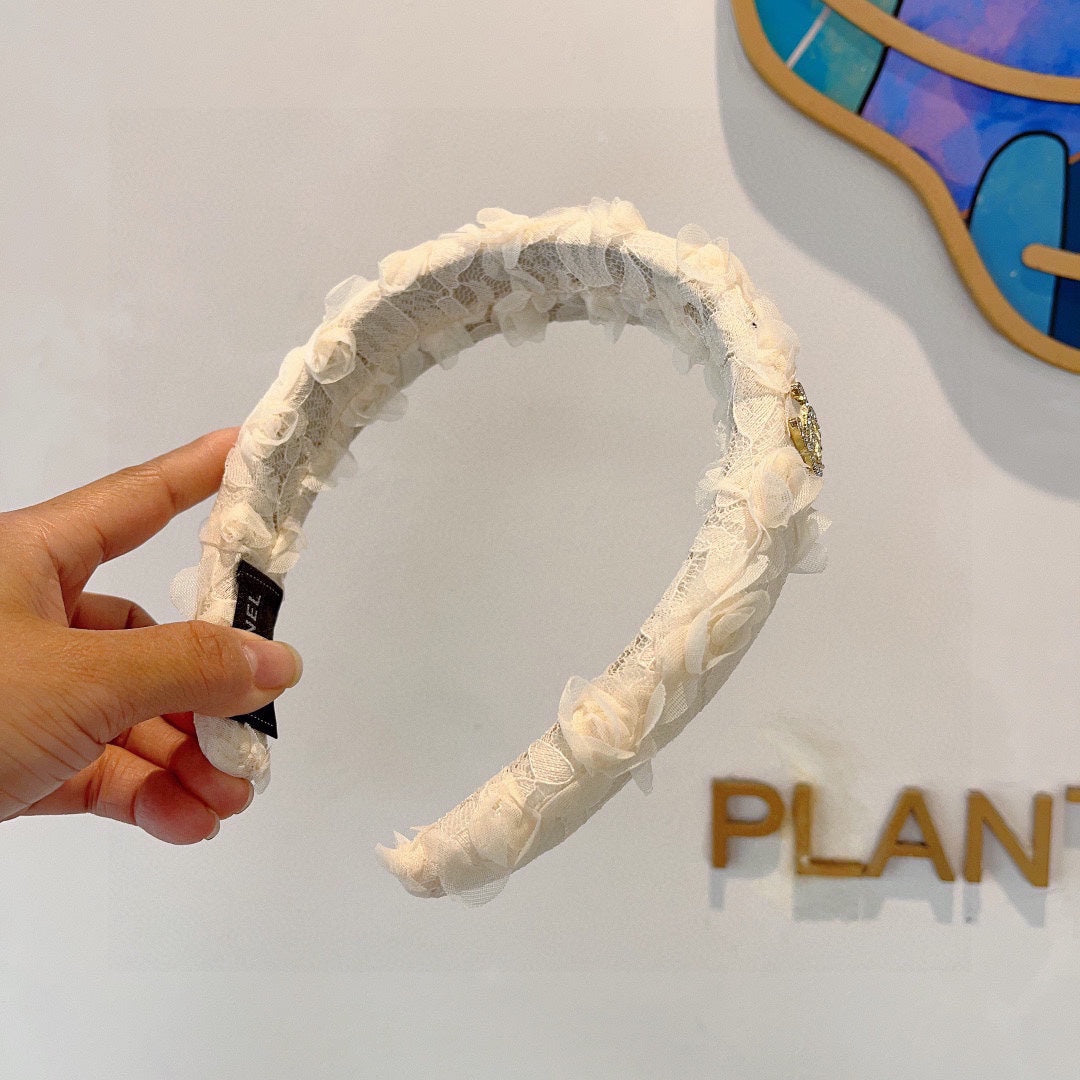 WHITE FABRIC WITH ROSE LACE TRIM HAIRBAND 414412