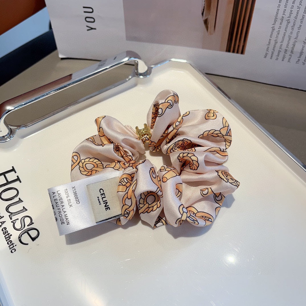 WHITE MIX LIGHT GOLD WRINKLED FABRIC SCRUNCHIE 417306
