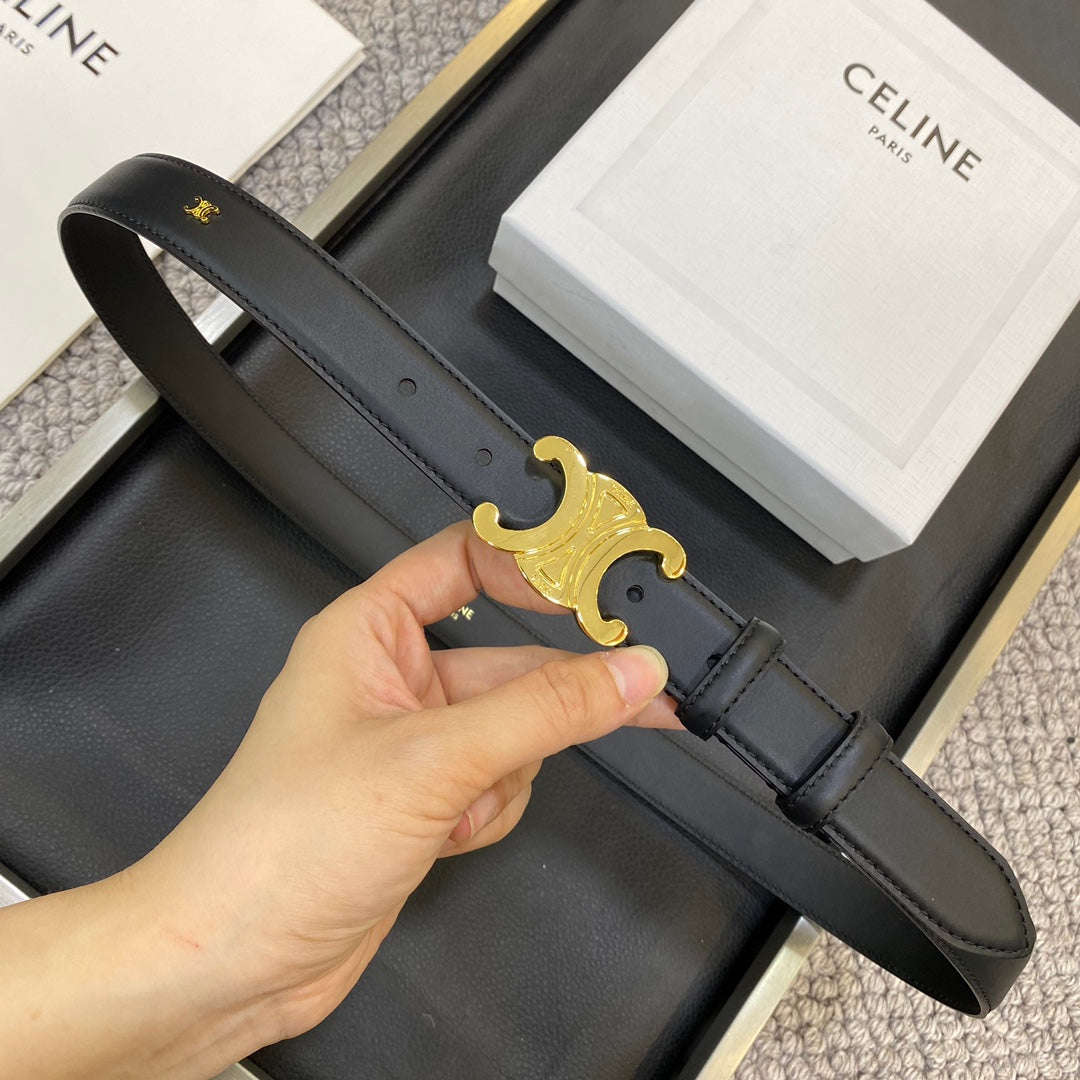 TRIOMPHE BELT 25MM IN BLACK CALFSKIN GOLD BUCKLE GOLD LOGO
