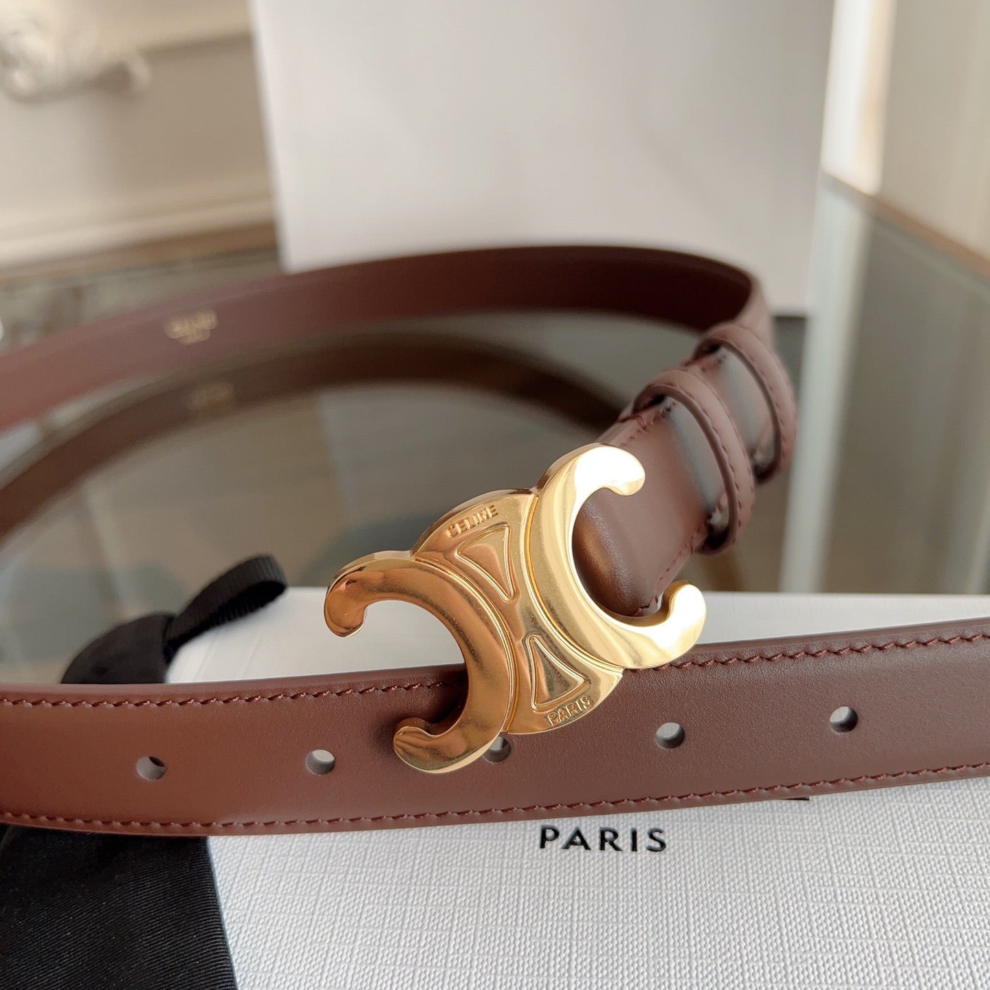 TRIOMPHE BELT 24MM IN BROWN CALFSKIN WITH GOLD BUCKLE