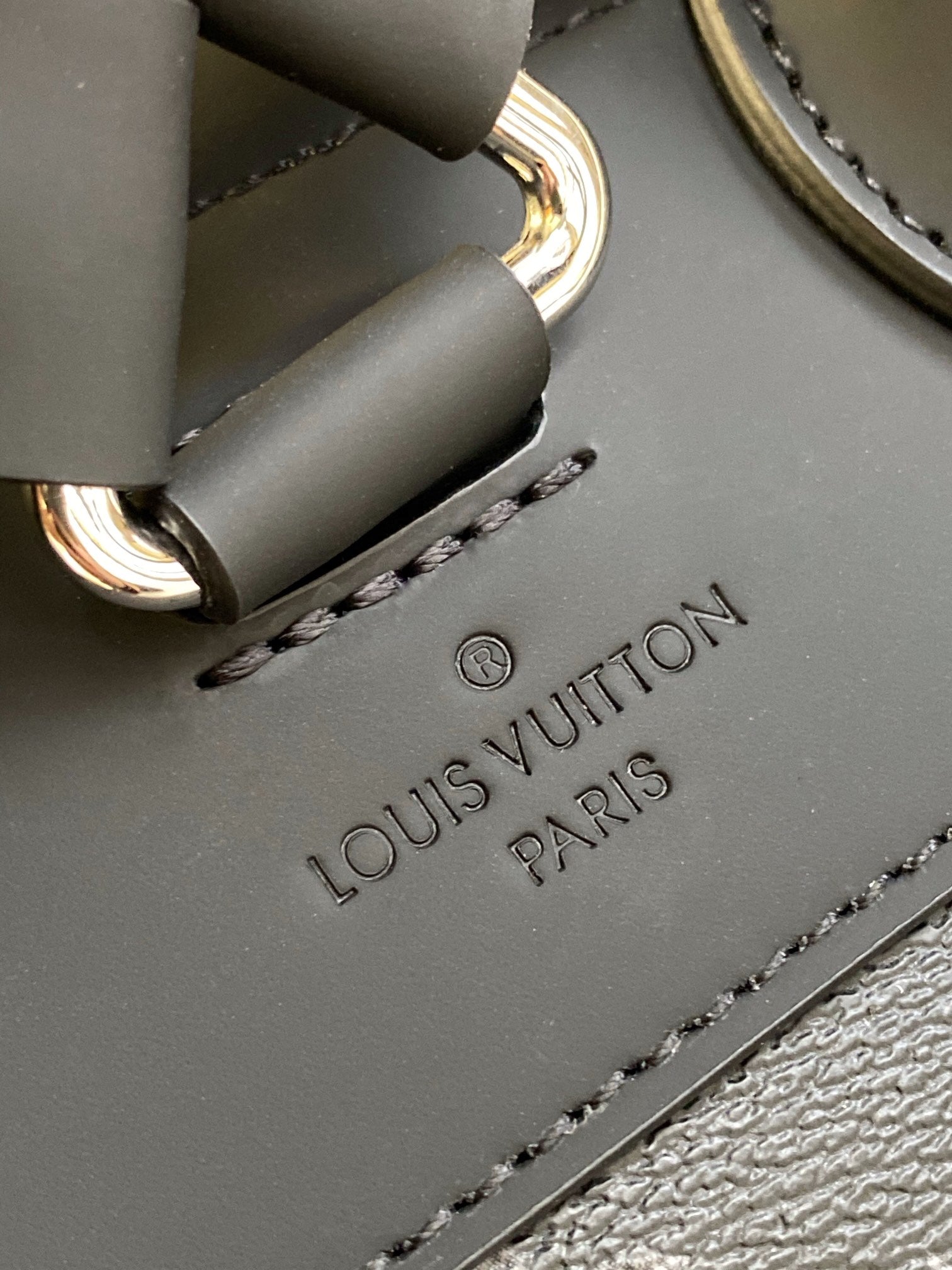 • STEAMER BACKPACK 45 IN GUN METAL MONOGRAM ECLIPSE CANVAS AND BLACK CALFSKIN SILVER BUCKLE