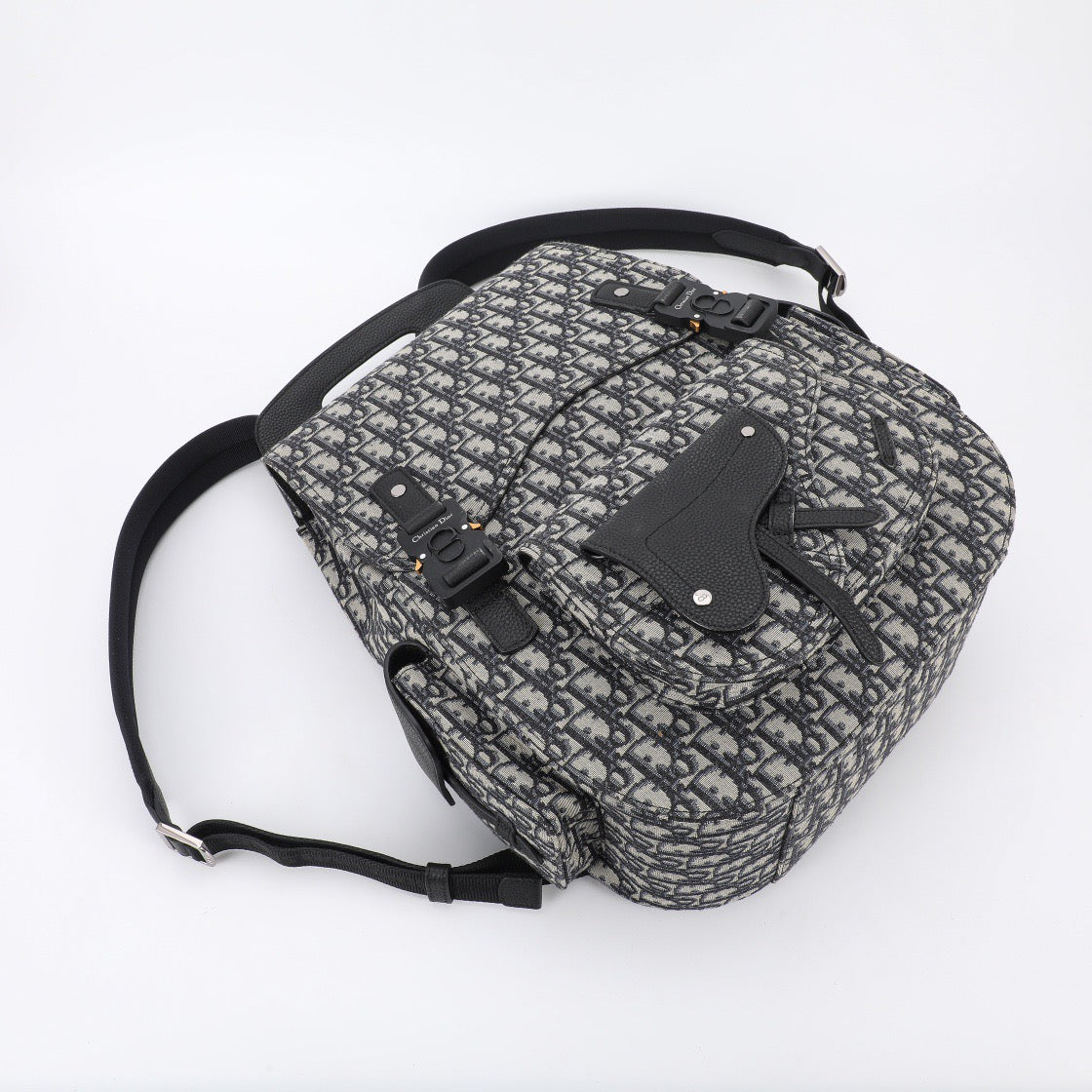 FENDI STRIKE 41 MEDIUM FF MIDNIGHT BLUE JACQUARD FABRIC BACKPACK