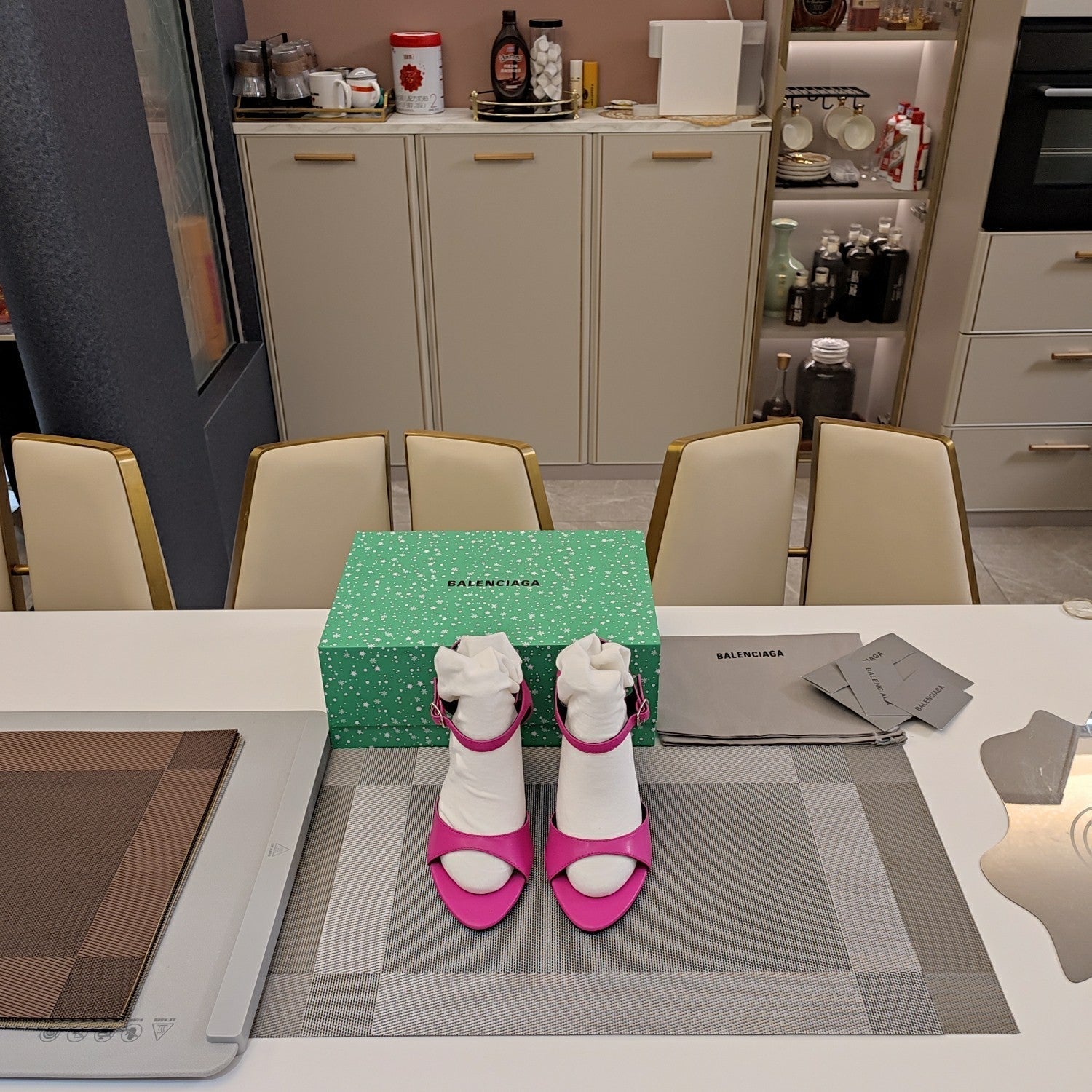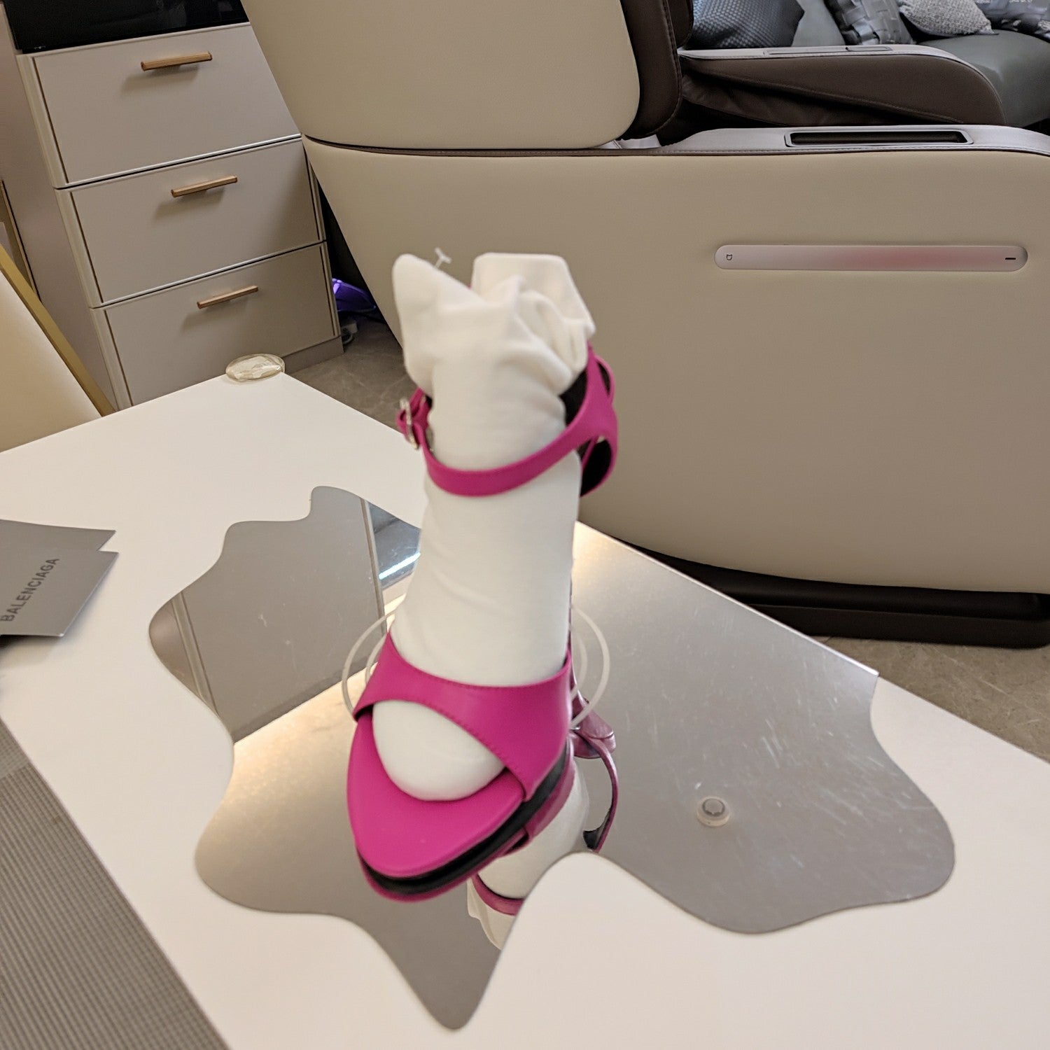 OPEN TOE STRAPPY HIGH HEEL IN PINK CALFSKIN