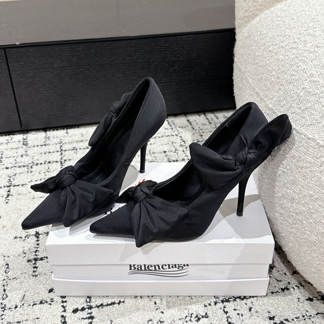 POINTED HIGH SLINGBLACK WITH BOW IN BLACK SILK