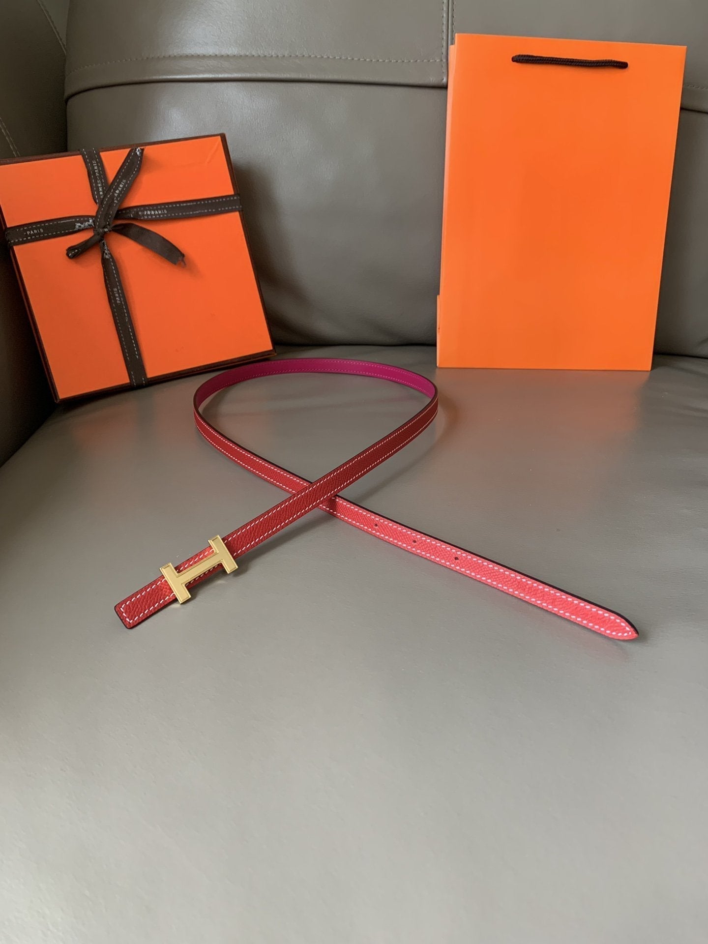 • H Buckle in permabrass plated metal.