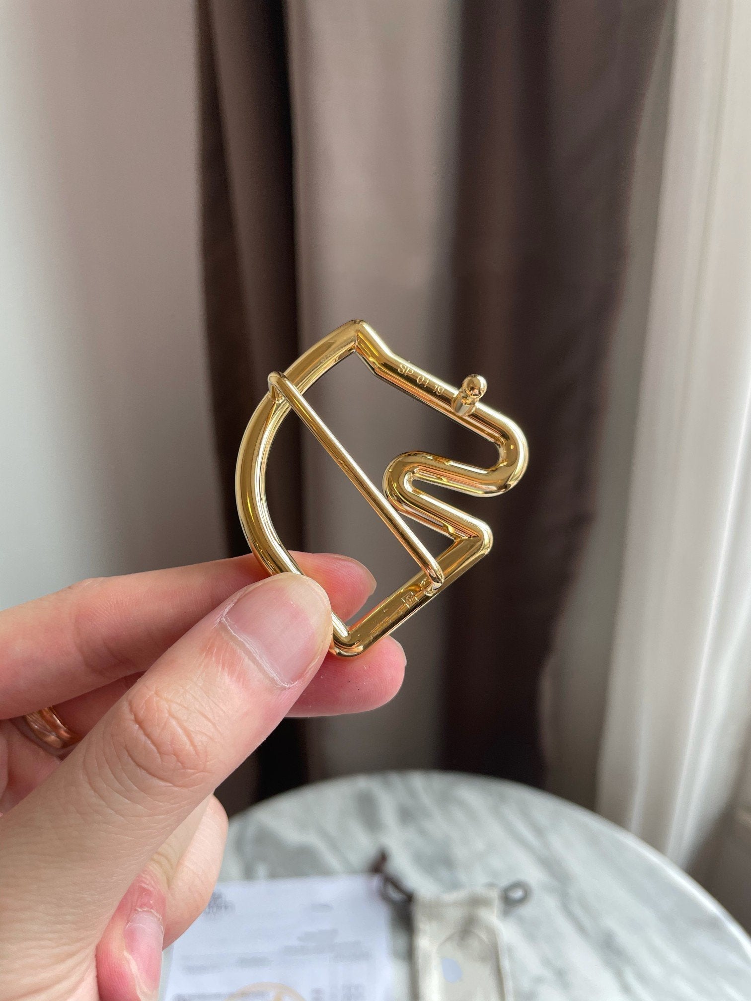 • H Buckle in permabrass plated metal.