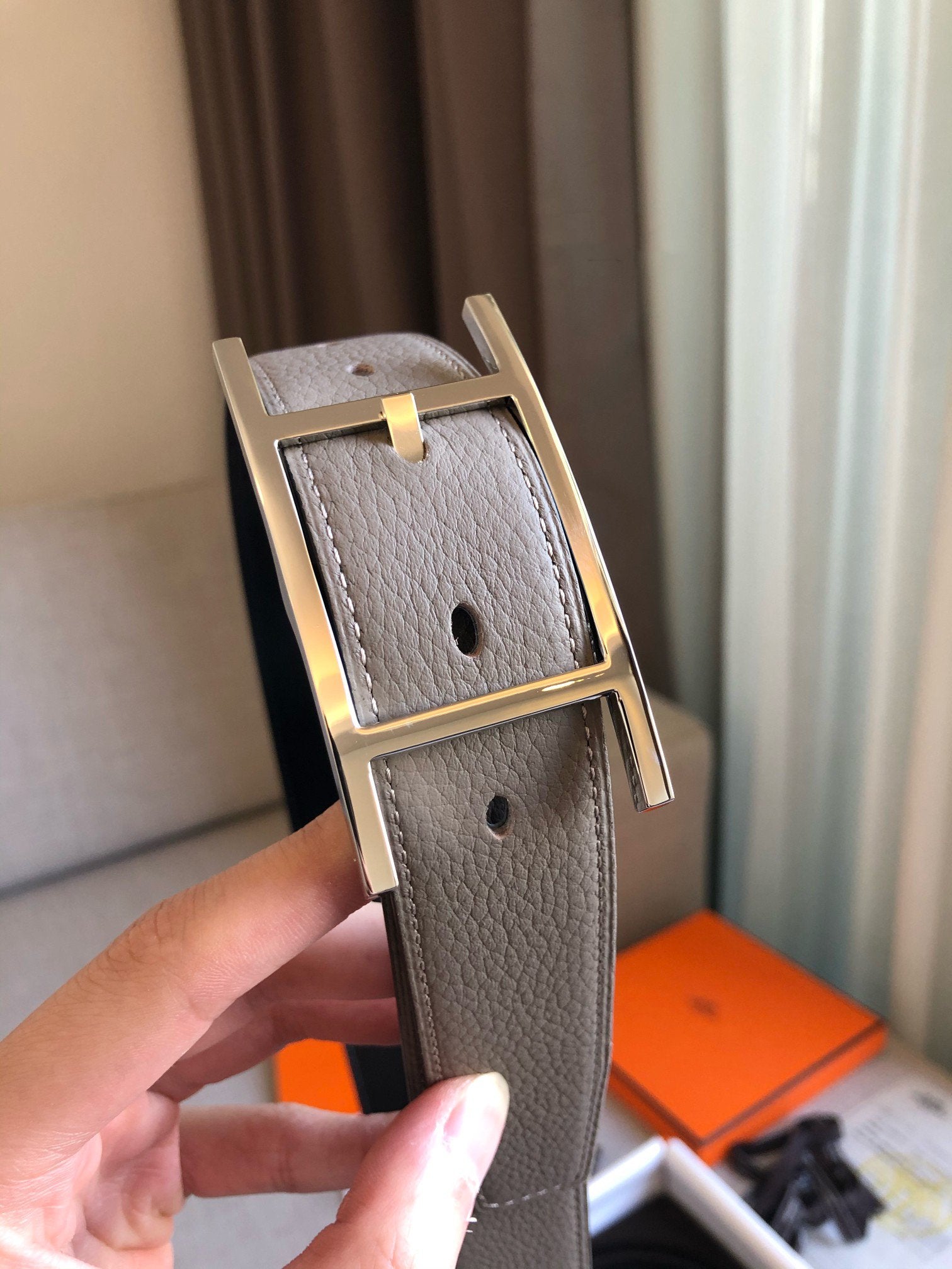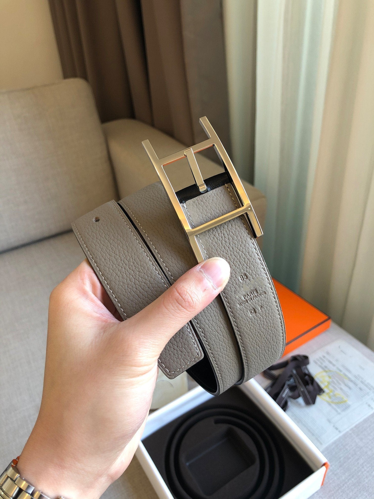 • H Buckle in permabrass plated metal.
