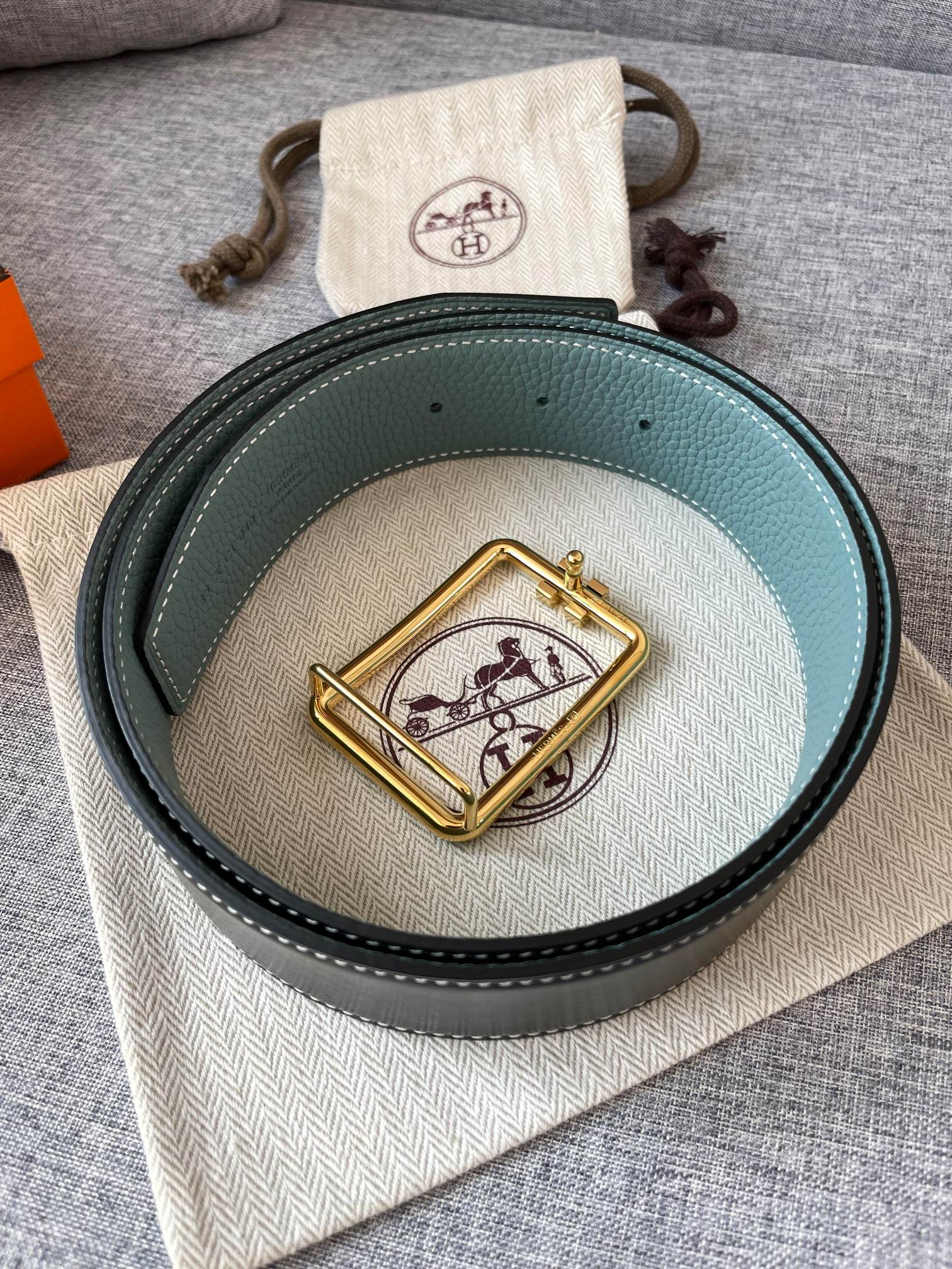 • H Buckle in permabrass plated metal.