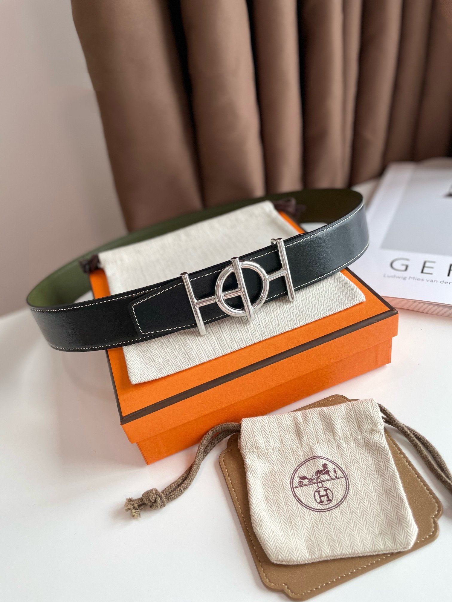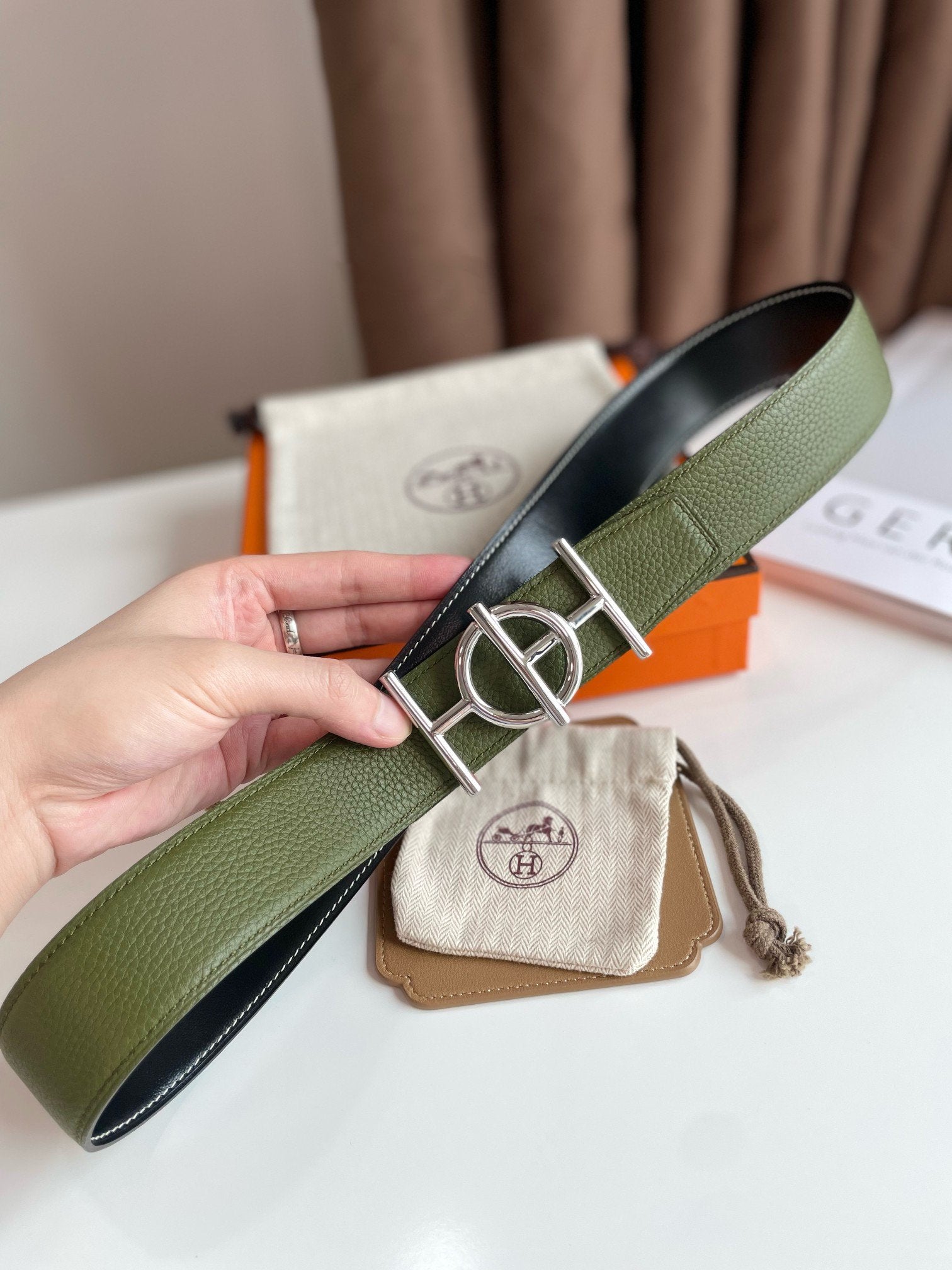 • H Buckle in permabrass plated metal.