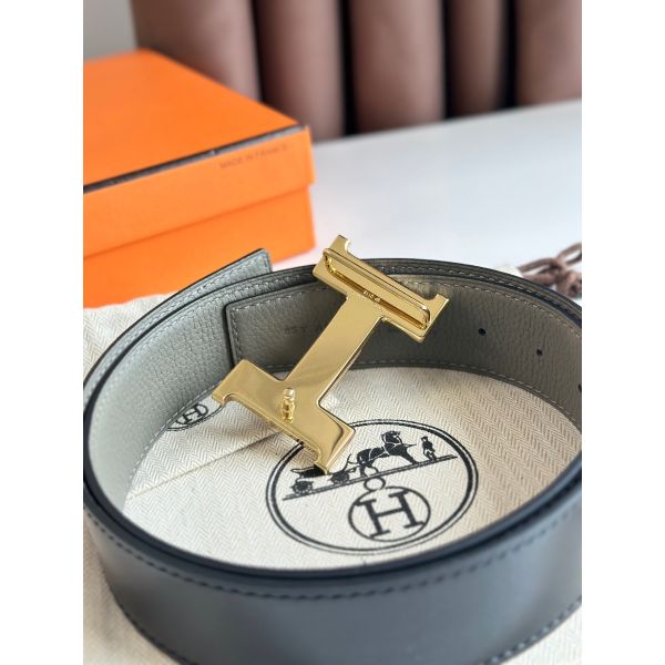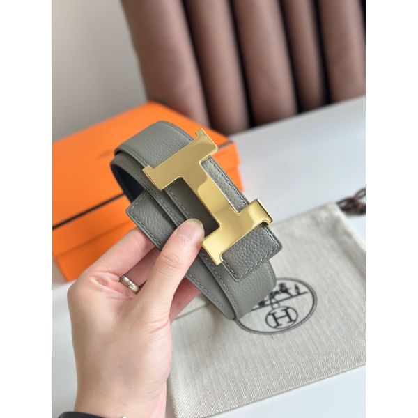 • HERM Constance Reversible Belt 38MM in Grey Clemence Leather