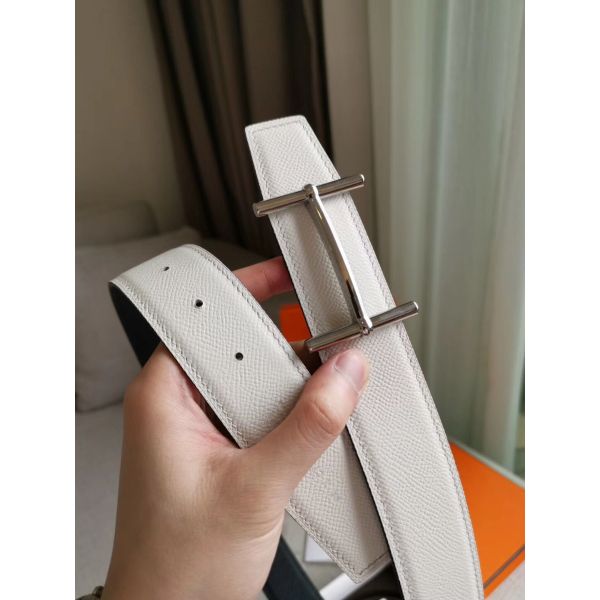 • HERM H d'Ancre Reversible Belt In Black/White Epsom Leather