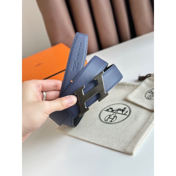 HERM H Speed Reversible Belt 32MM in Blue Saphir Epsom Calfskin