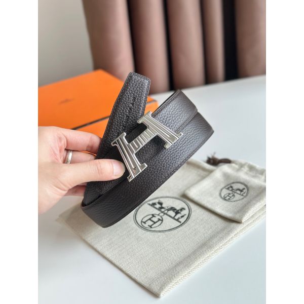 • HERM H Take Off Reversible Belt 32MM in Chocolate Clemence Leather
