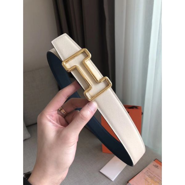 • HERM Tonight 38MM Reversible Belt In Navy/White Epsom Leather