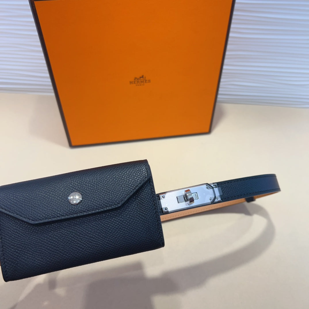 • HM KELLY POCKET 18MM BELT BLACK LEATHER SILVER HARDWARE