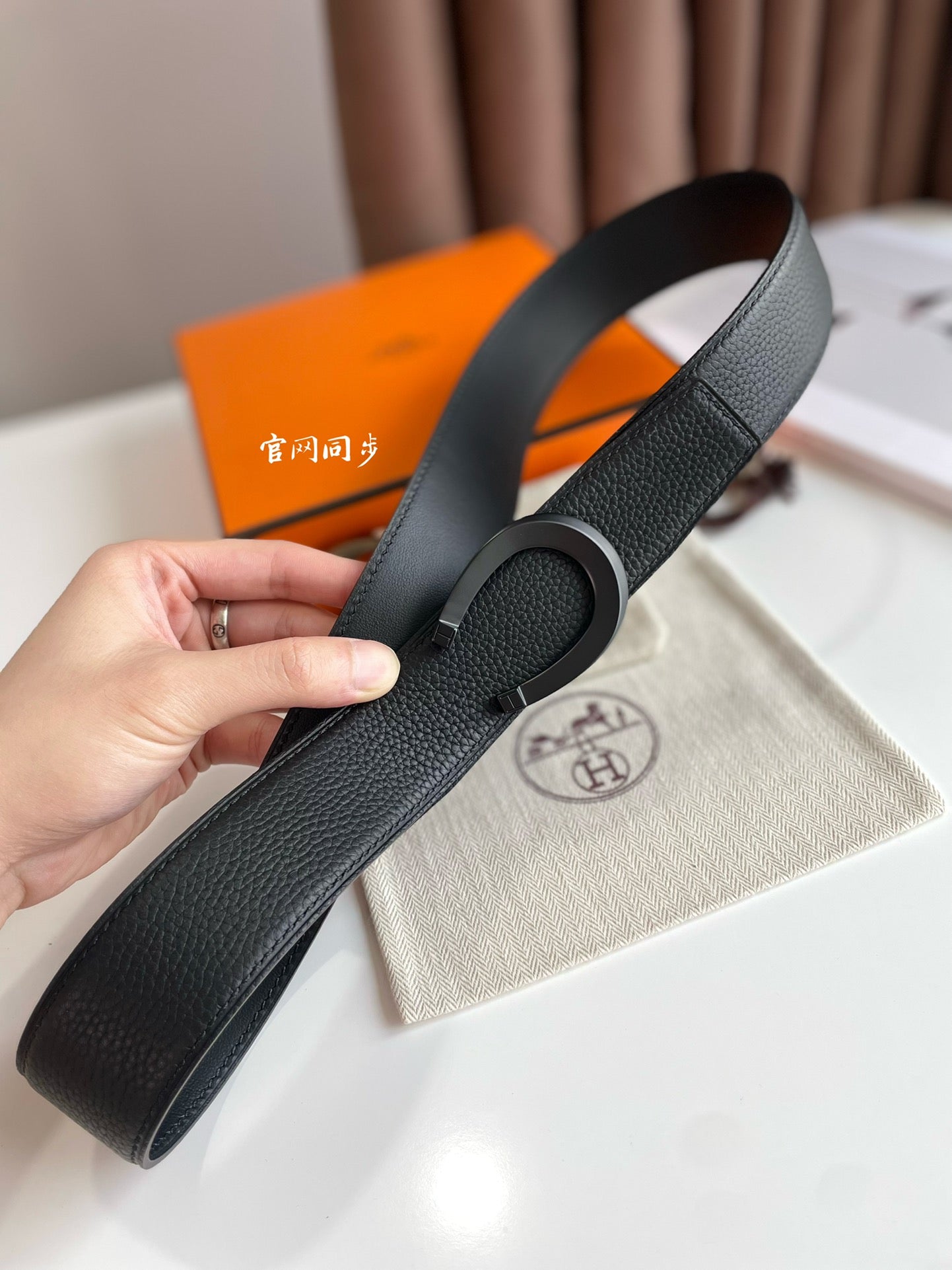 • HM LUCK BELT BUCKLE & REVERSIBLE BLACK LEATHER STRAP 38MM
