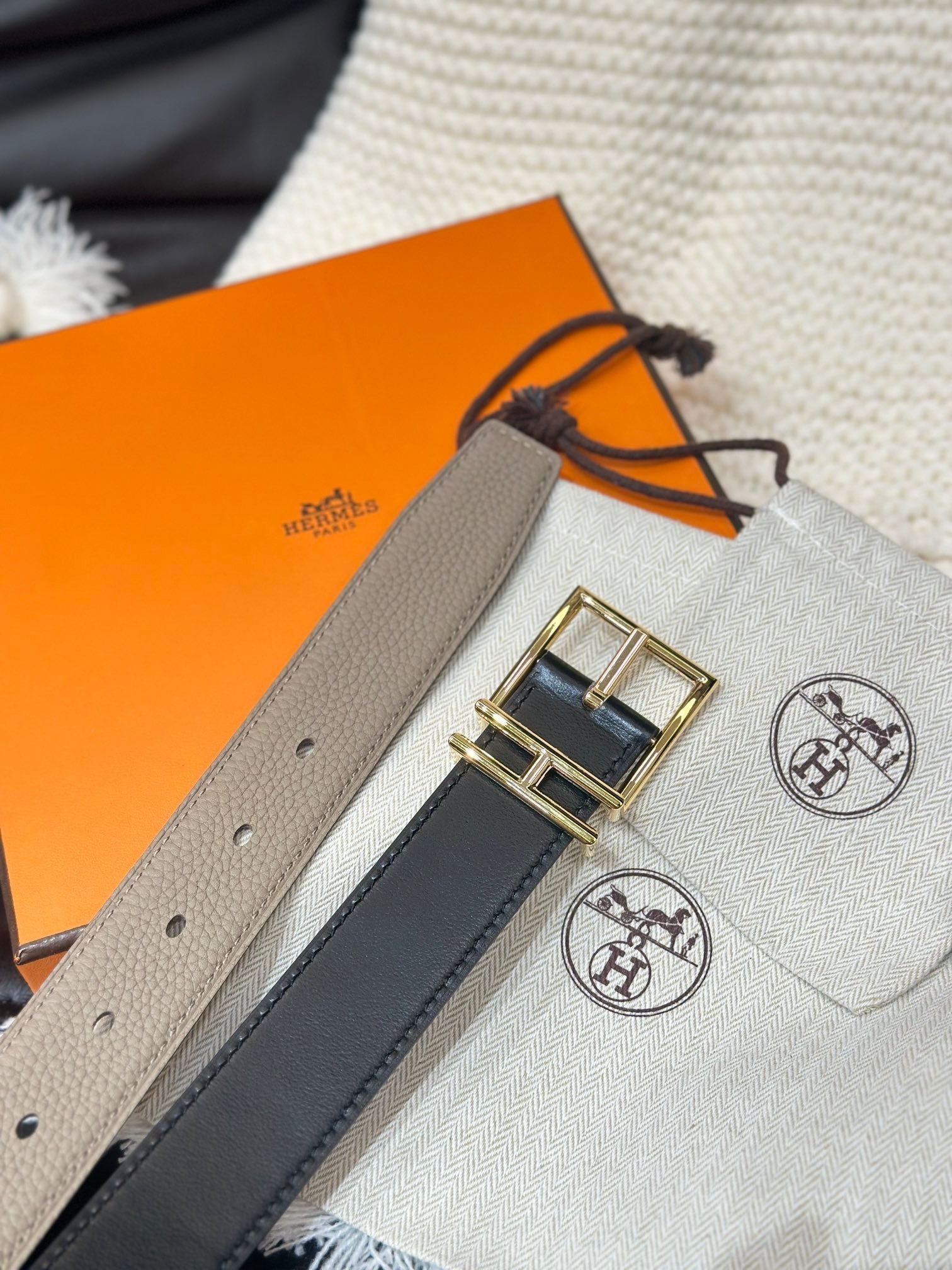 • HM NATHAN 32MM REVERSIBLE BELT IN BLACK AND TAN LEATHER GOLD BUCKLE