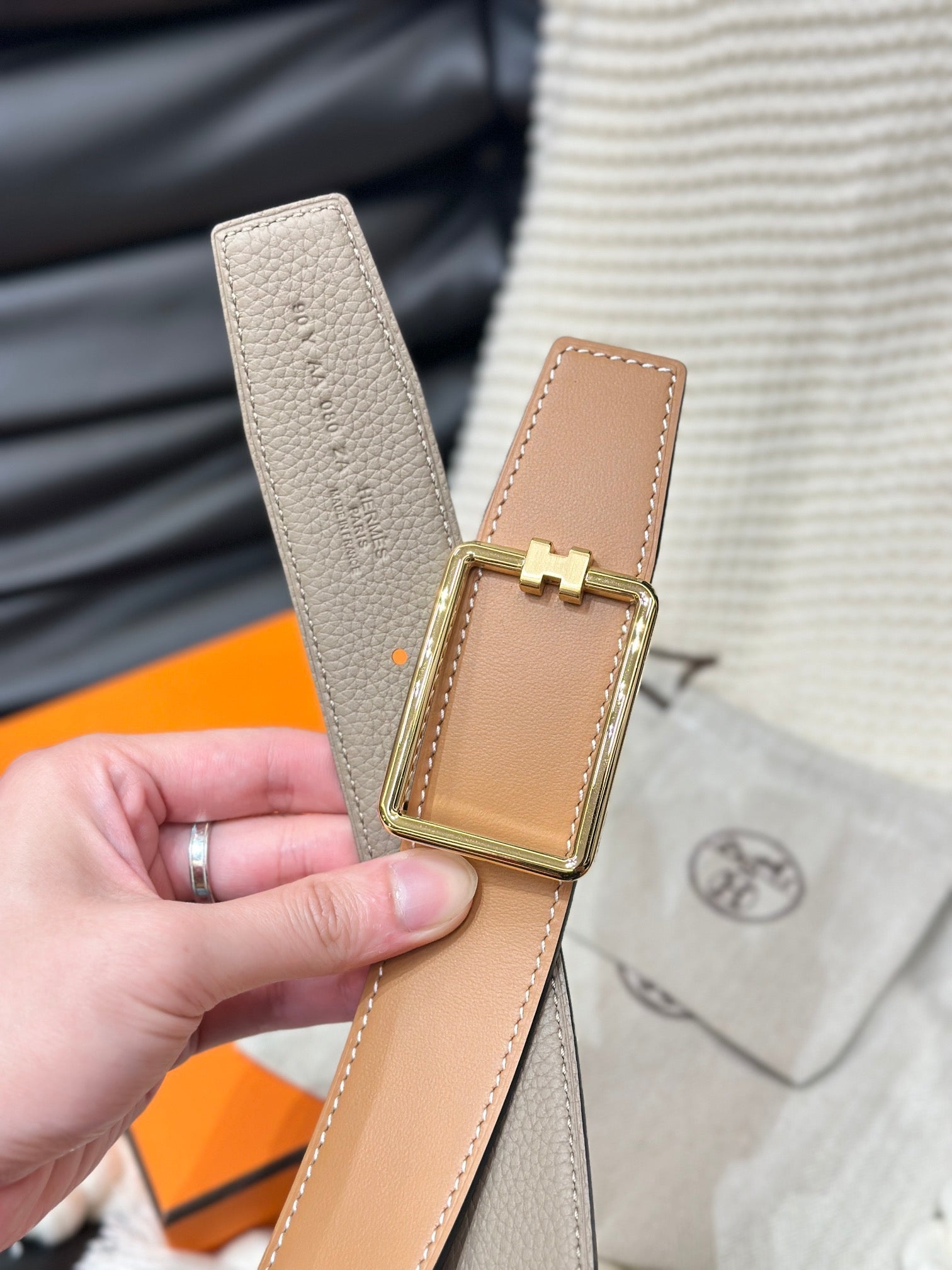 • Gold- toned hardware