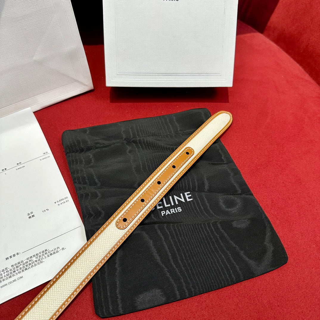 • TRIOMPHE BELT 25MM REVERSIBLE IN WHITE FABRIC AND BROWN CALFSKIN WITH GOLD BUCKLE