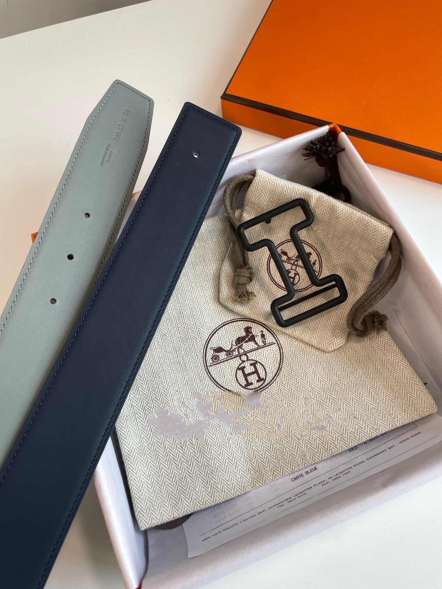 HERM H Striee Reversible Belt 32MM in Blue and Black Epsom Calfskin