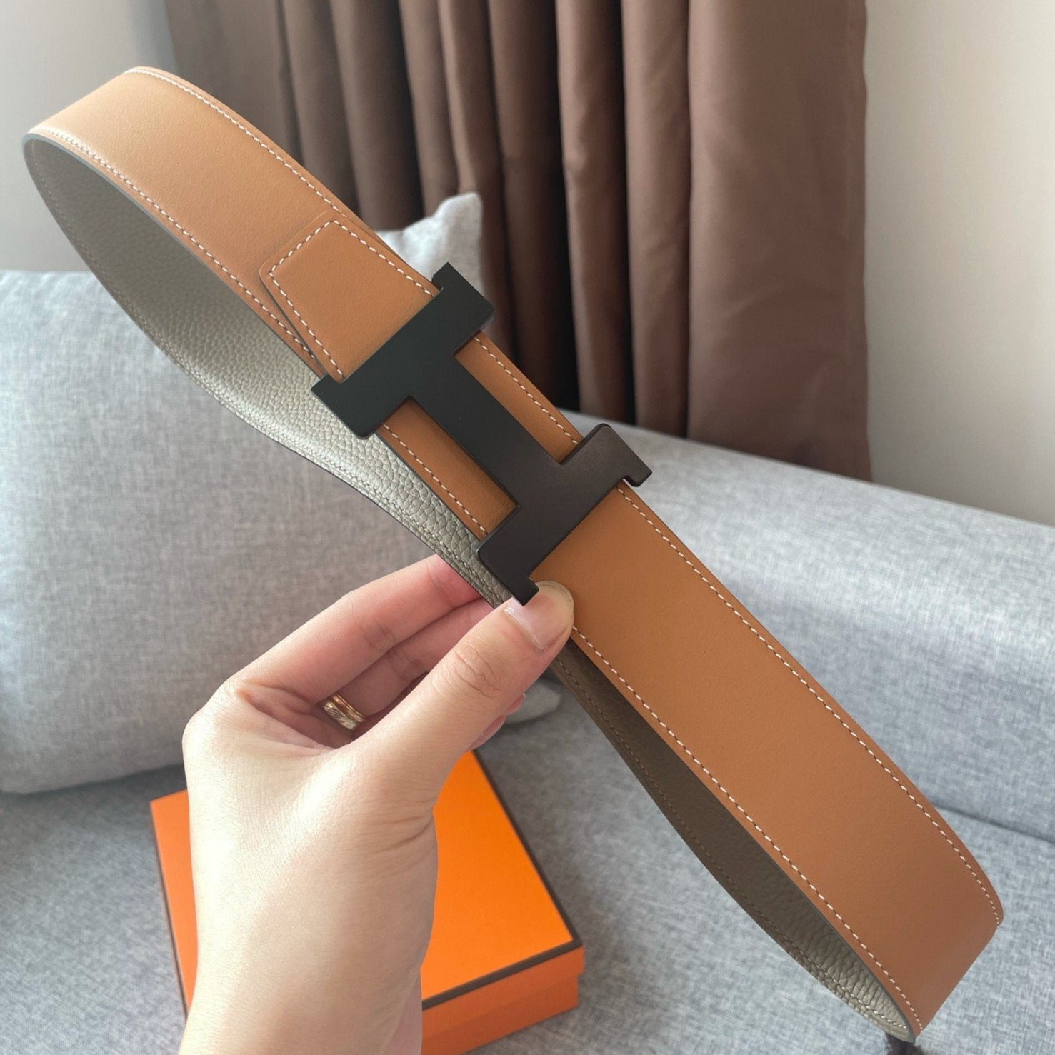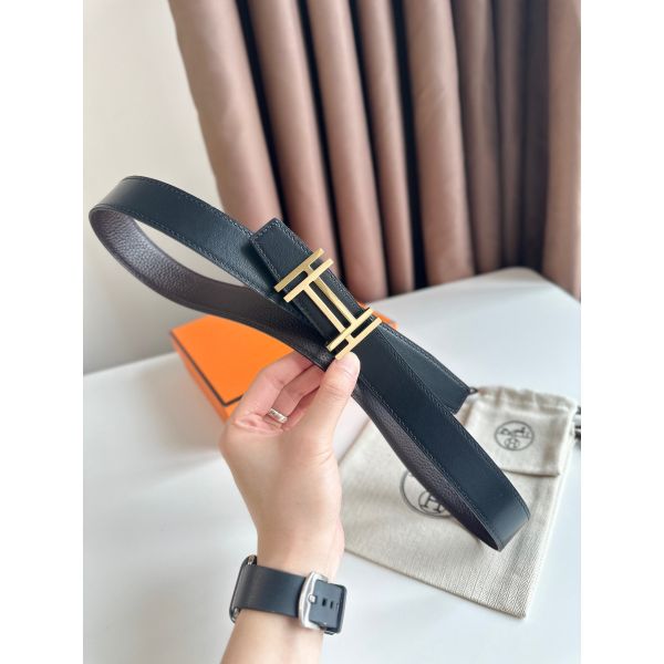 HERM H Touareg Reversible Belt 32MM in Gold Clemence Leather