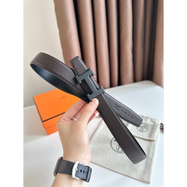 HERM H au Carre Reversible Belt 32MM in Chocolate Clemence Leather
