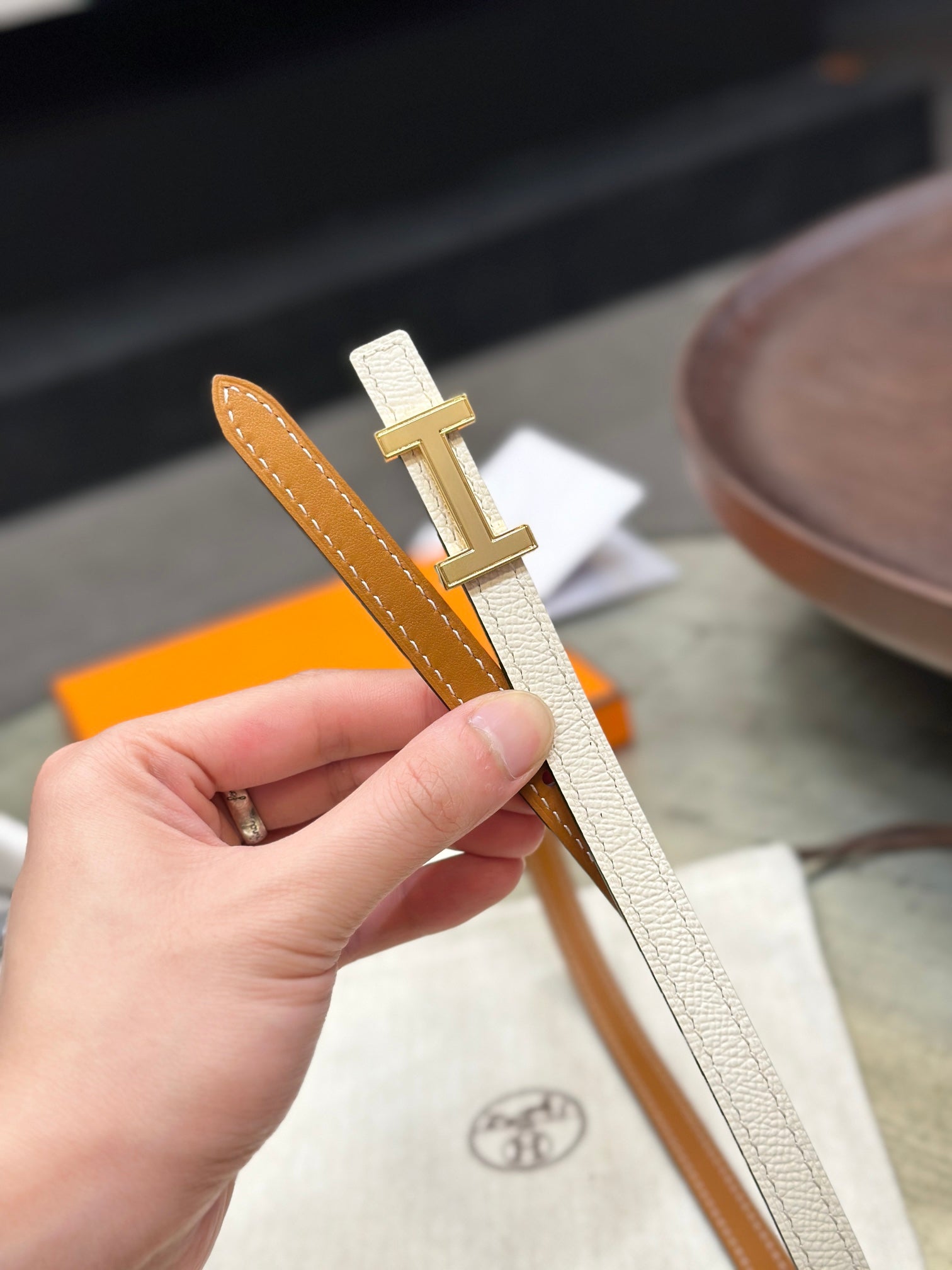 HERM H Reversible 38MM Belt with matte Buckle in White and Gold Epsom Leather