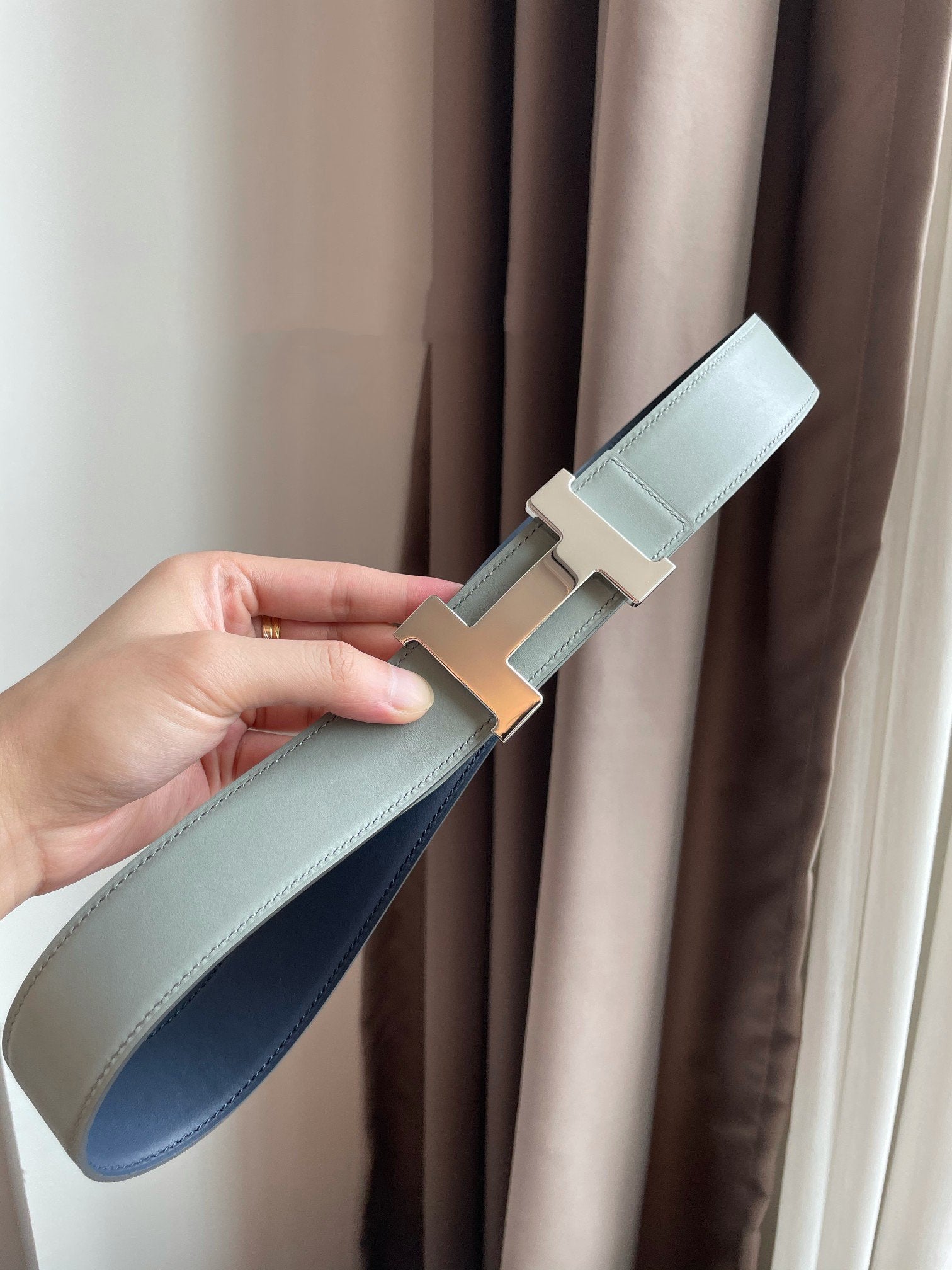 HERM Tube H Reversible Belt 38MM in Grey Clemence Leather