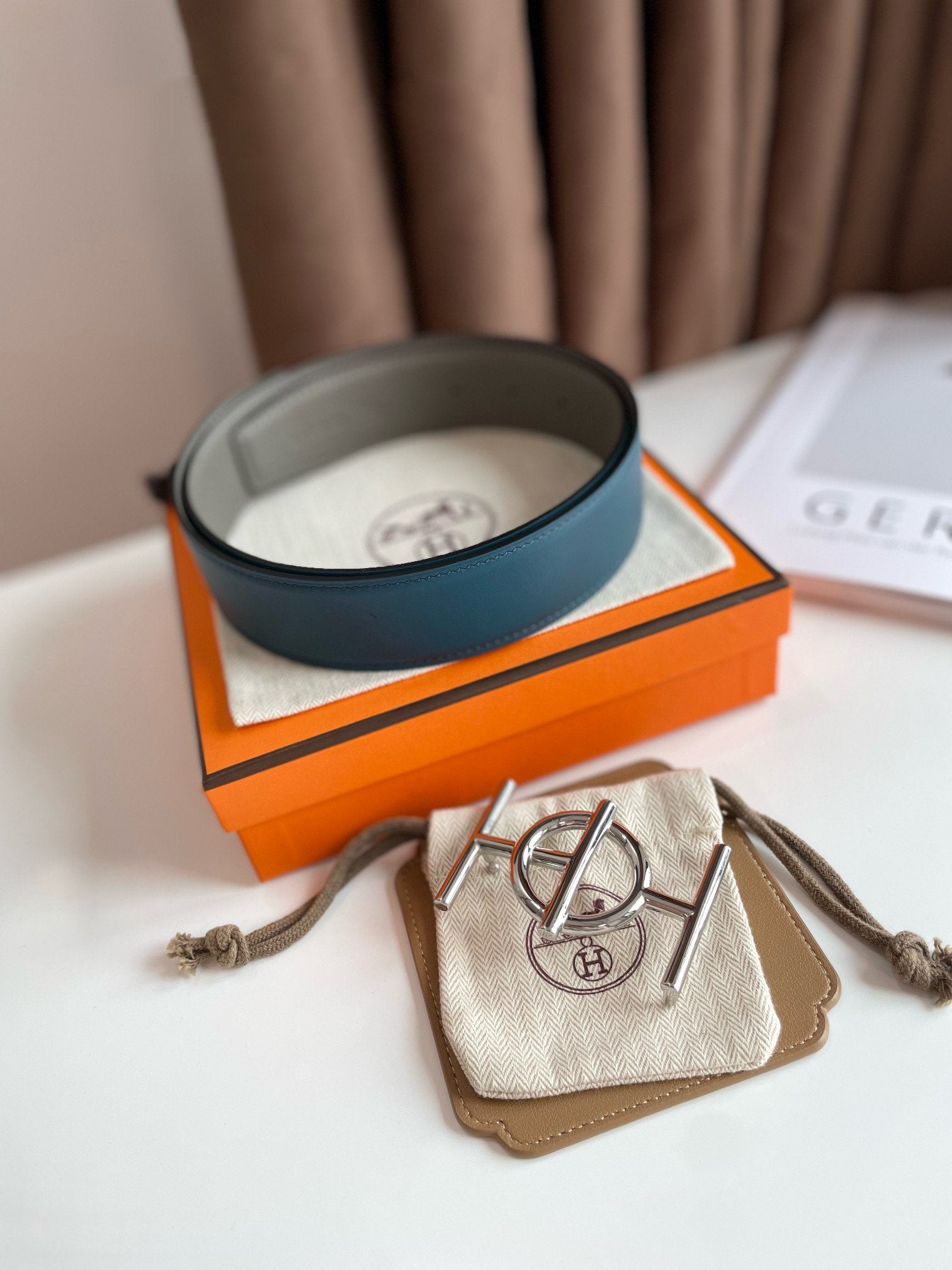 HERM H Speed Reversible Belt 32MM in Blue Saphir Epsom Calfskin