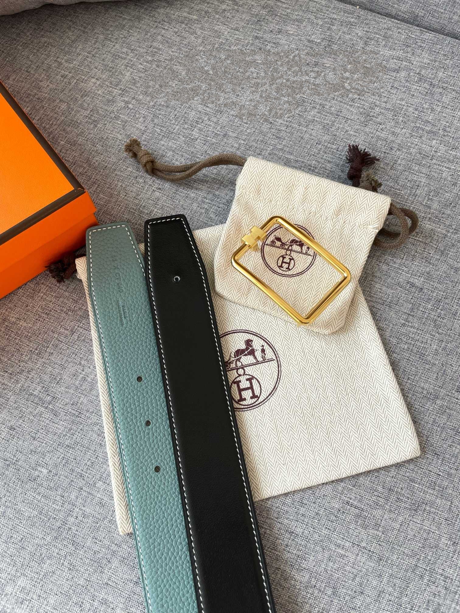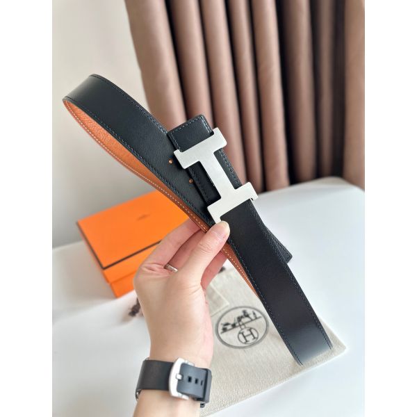 HERM Constance Reversible Belt 38MM in Epsom Leather with Black Buckle