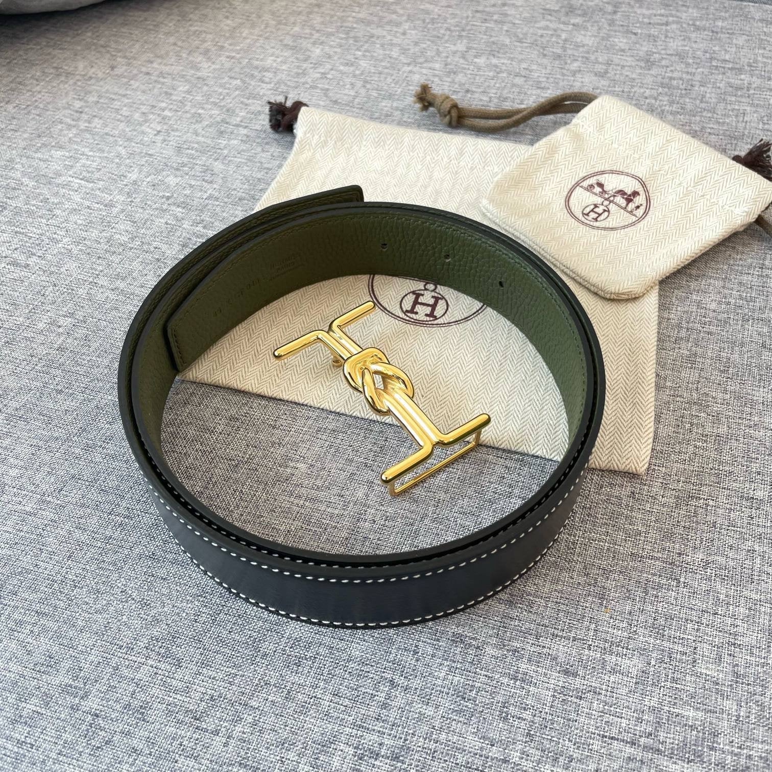 H TUBE BELT 38MM GOLD BUCKLE TIN GREY GOLD LEATHER