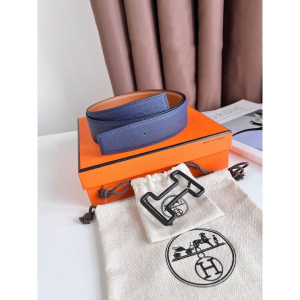 HERM H Reversible Belt 38MM in Blue Clemence Leather