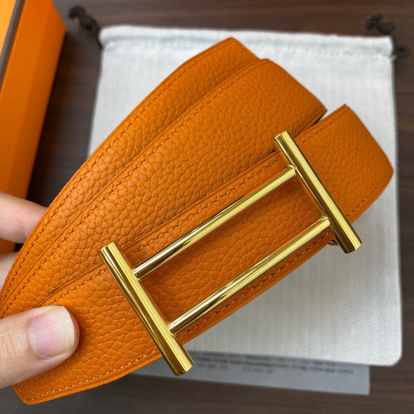 HERM Gamma 13mm Belt in Orange Epsom Leather and White Swift Leather