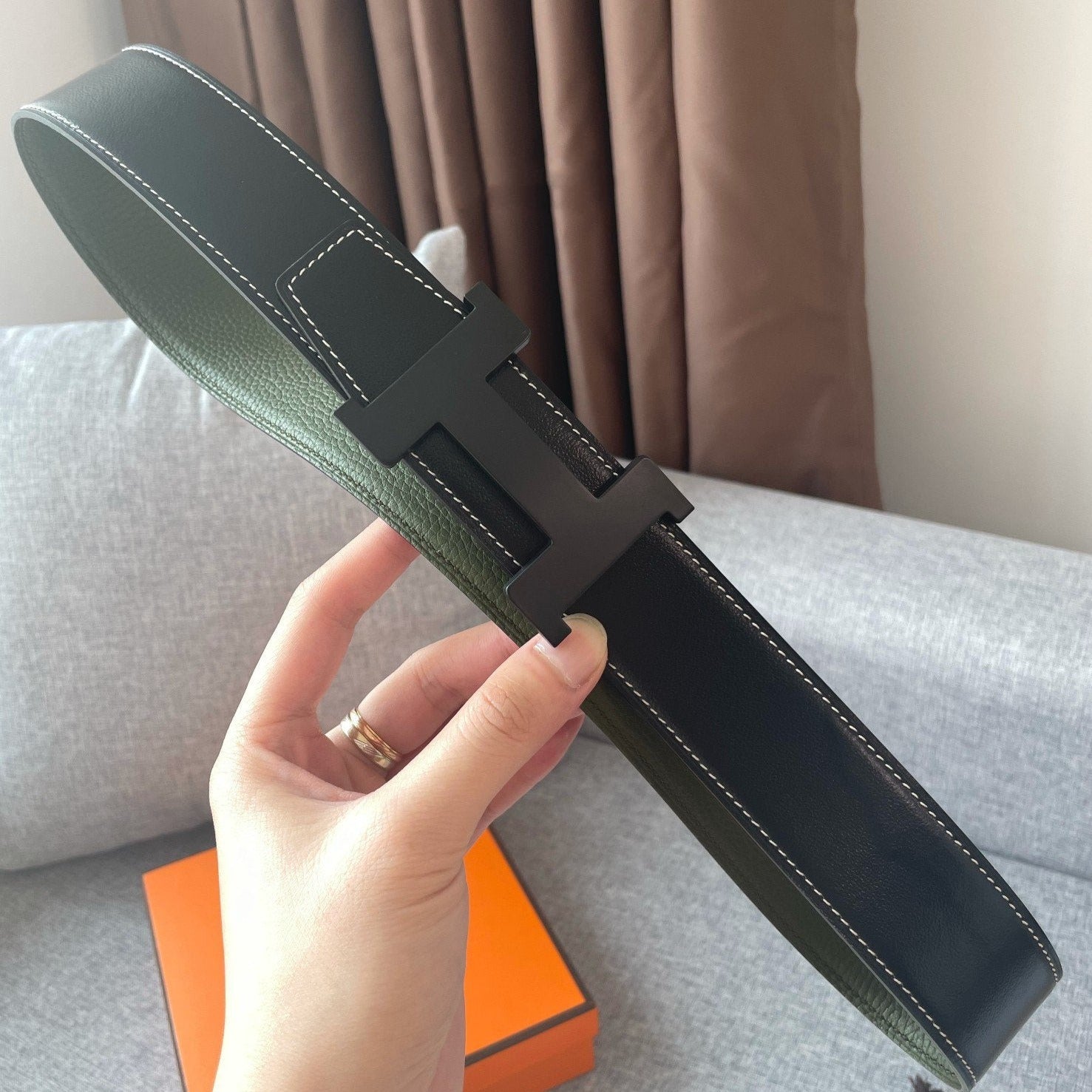 H TONIGHT BELT 38MM BROWN GREEN GREY LEATHER