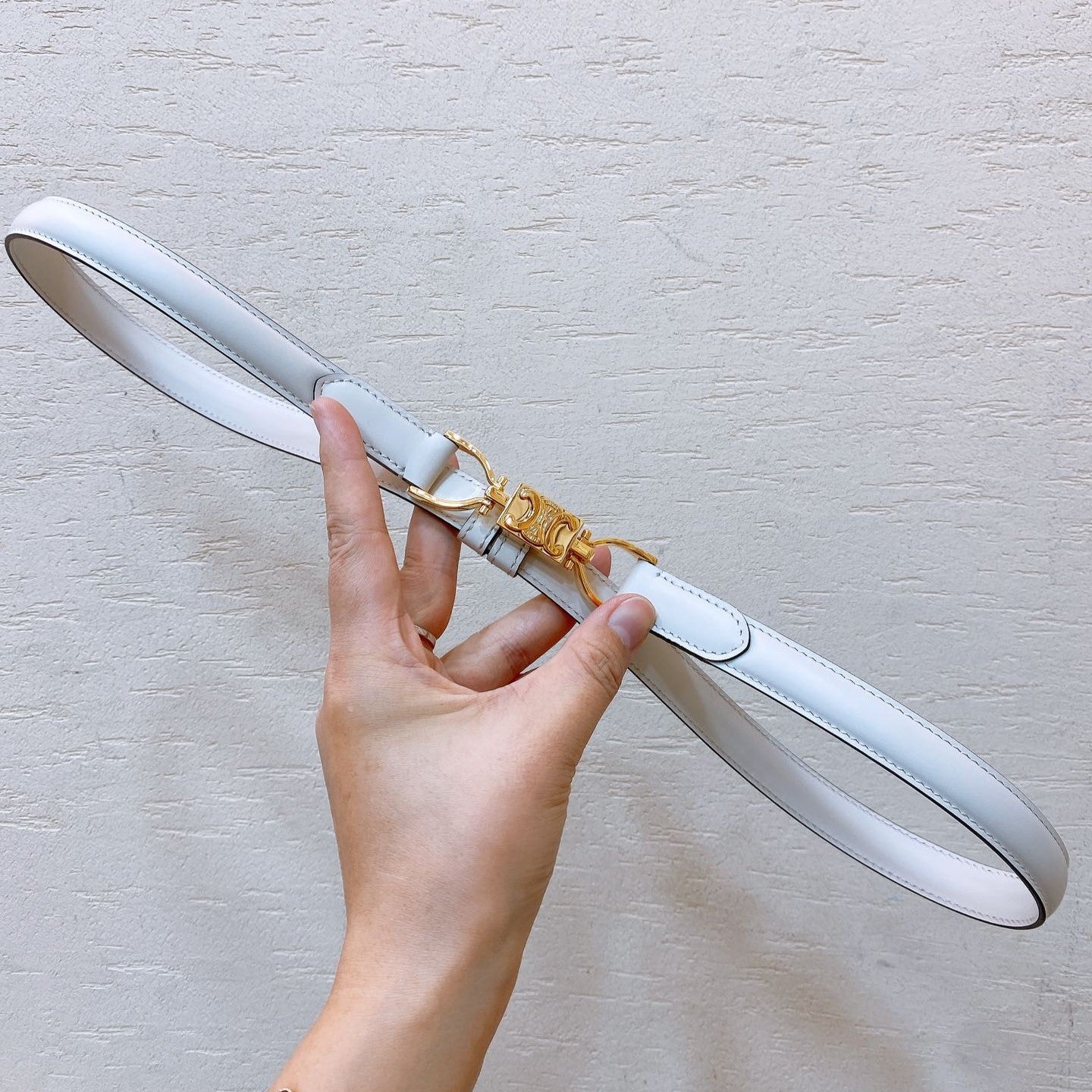Hook & Loop 20mm TRIOMPHE Logo Square Adjustable Belt White Calfskin Ghw