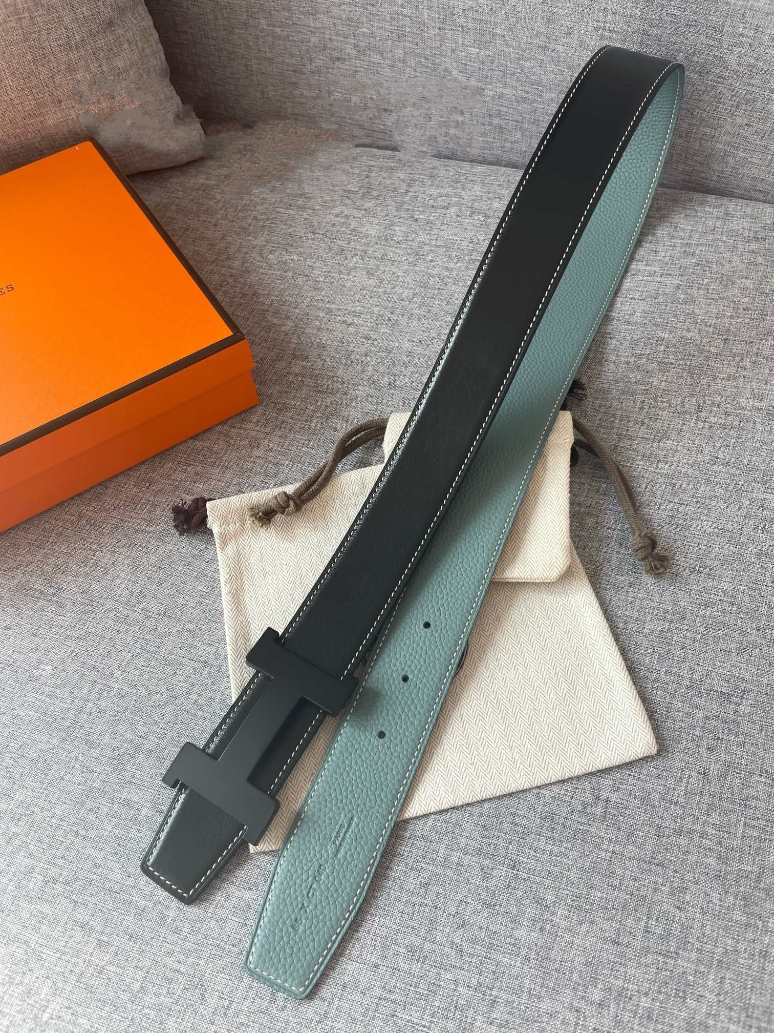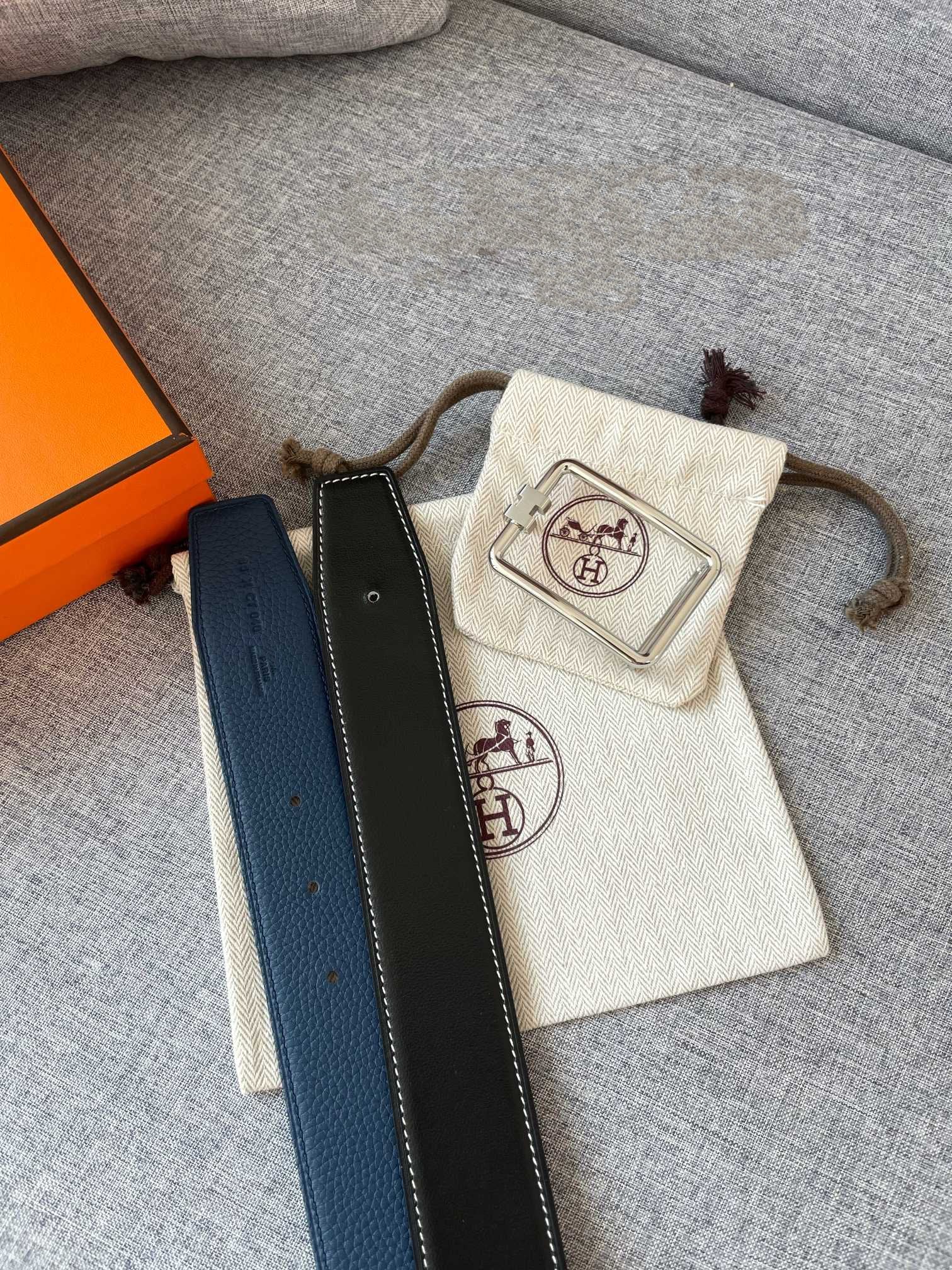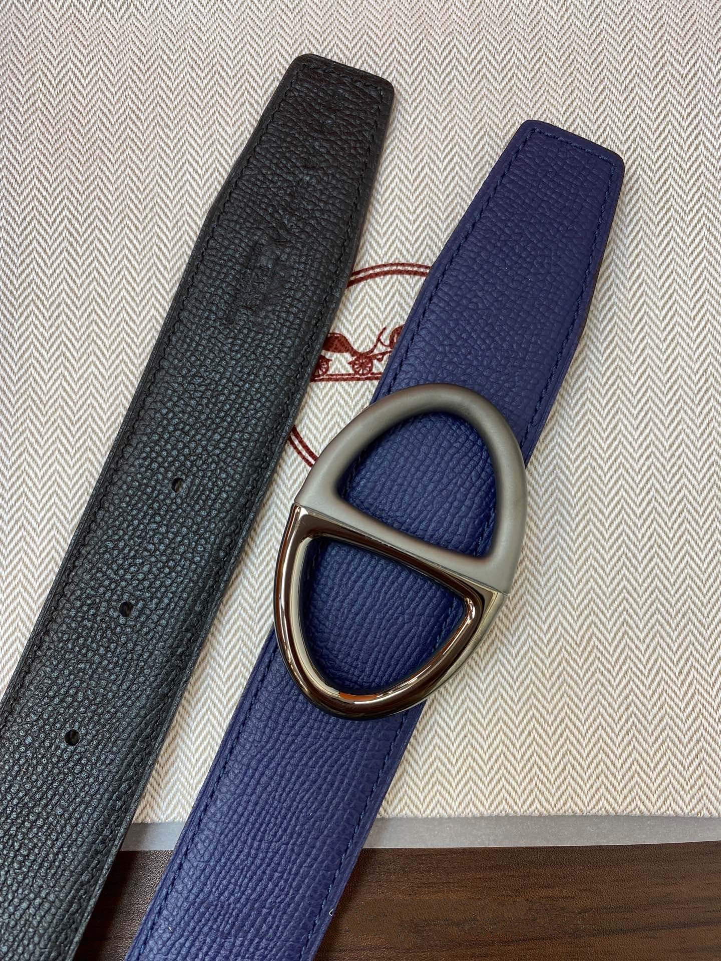 HERM Tube H Reversible Belt 38MM in Blue Clemence Leather