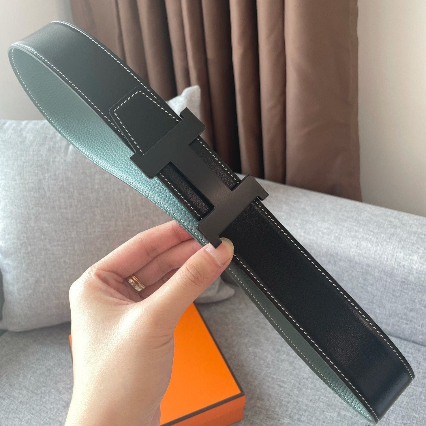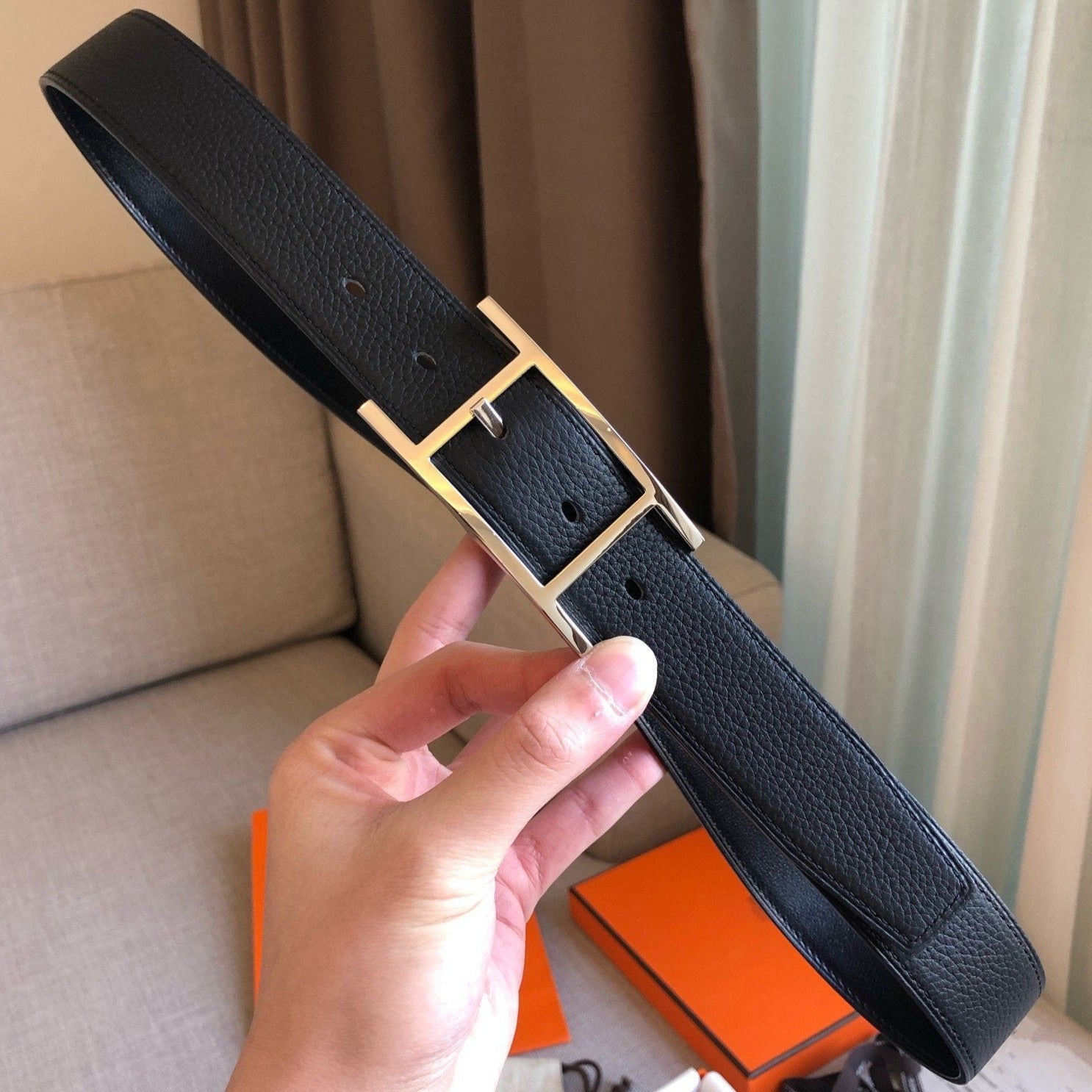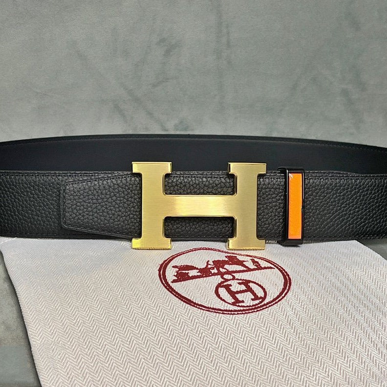H BELT GOLD BUCKLE 38 MM SMOOTH ORANGE LEATHER REVERSIBLE