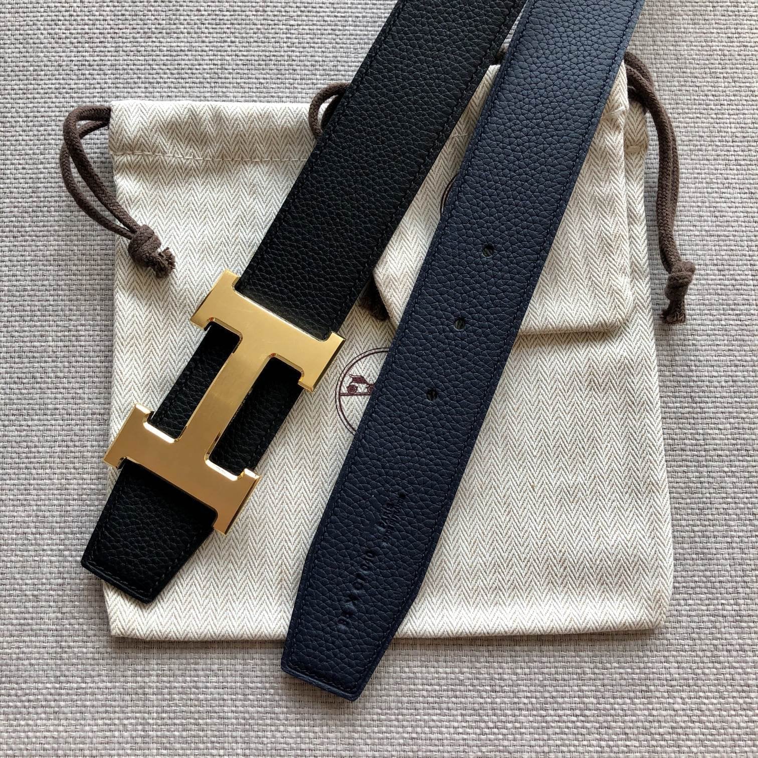 HERM H Touareg Reversible Belt 32MM in Gold Epsom Leather
