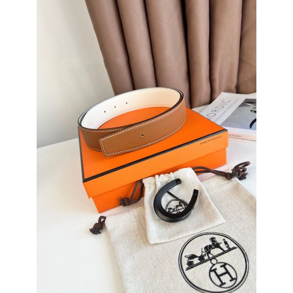 HERM H Touareg Reversible Belt 32MM in White Epsom Leather