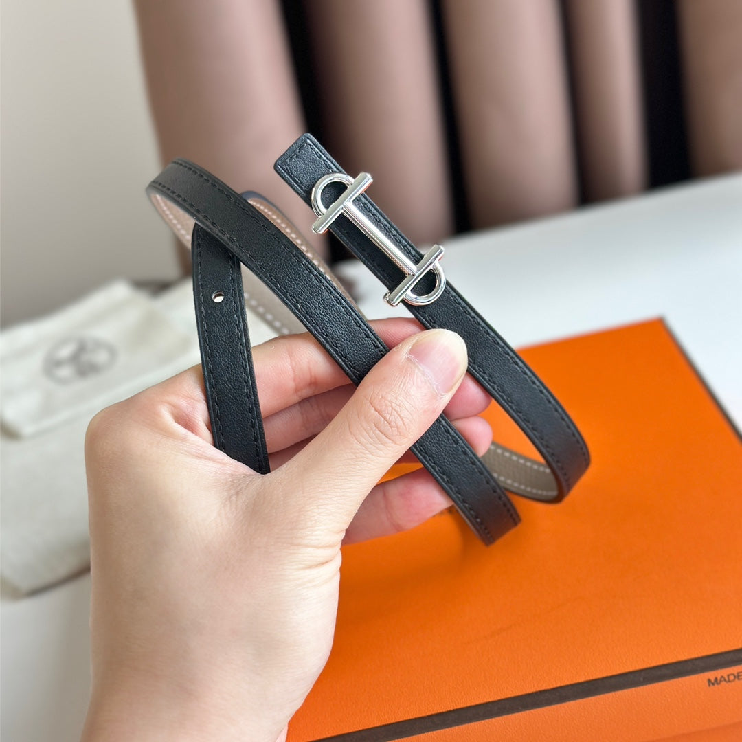 H BELT SILVER BLACK LEATHER REVERSIBLE 3.2CM