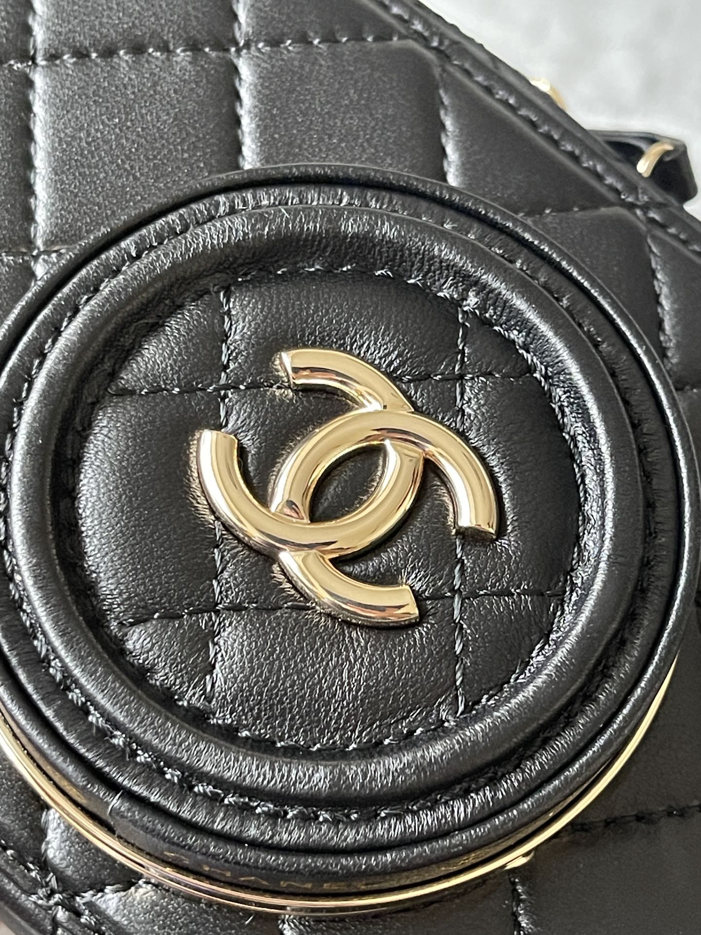 CC 16 CAMERA BAG IN BLACK CALFSKIN AND GOLD PLATED METAL